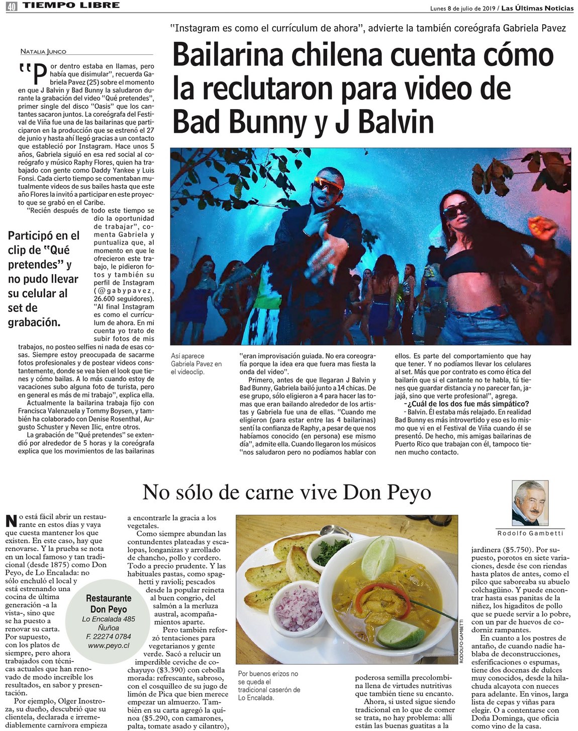 Bailarina chilena cuenta cómo la reclutaron para video de Bad Bunny y J Balvin