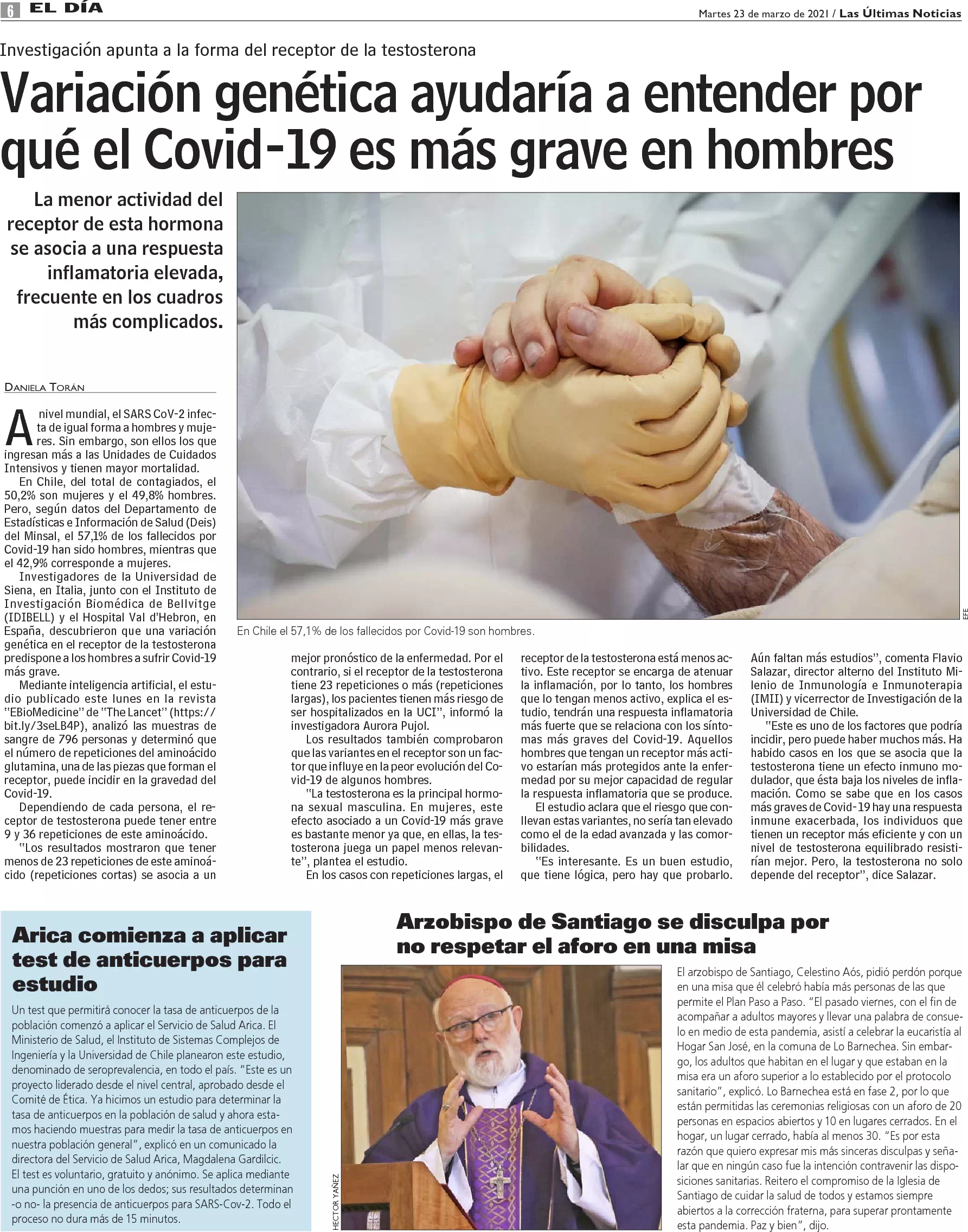 Variación genética ayudaría a entender por qué el Covid-19 es más grave en hombres