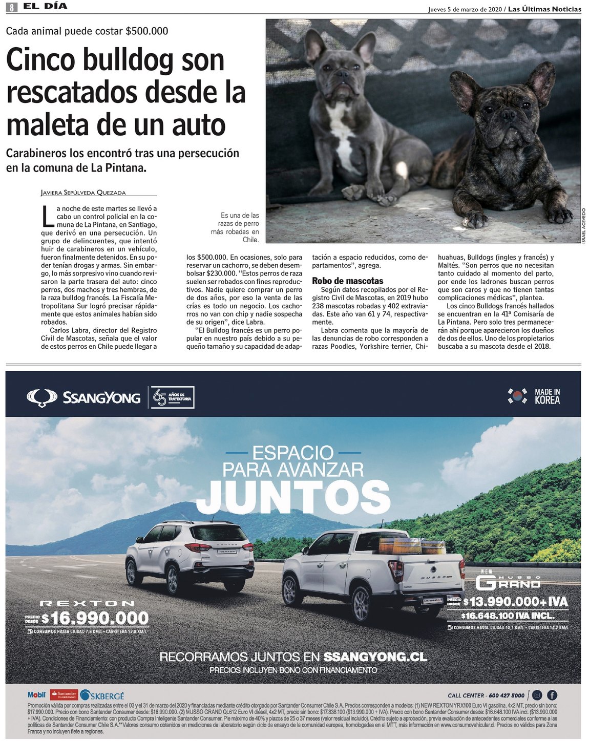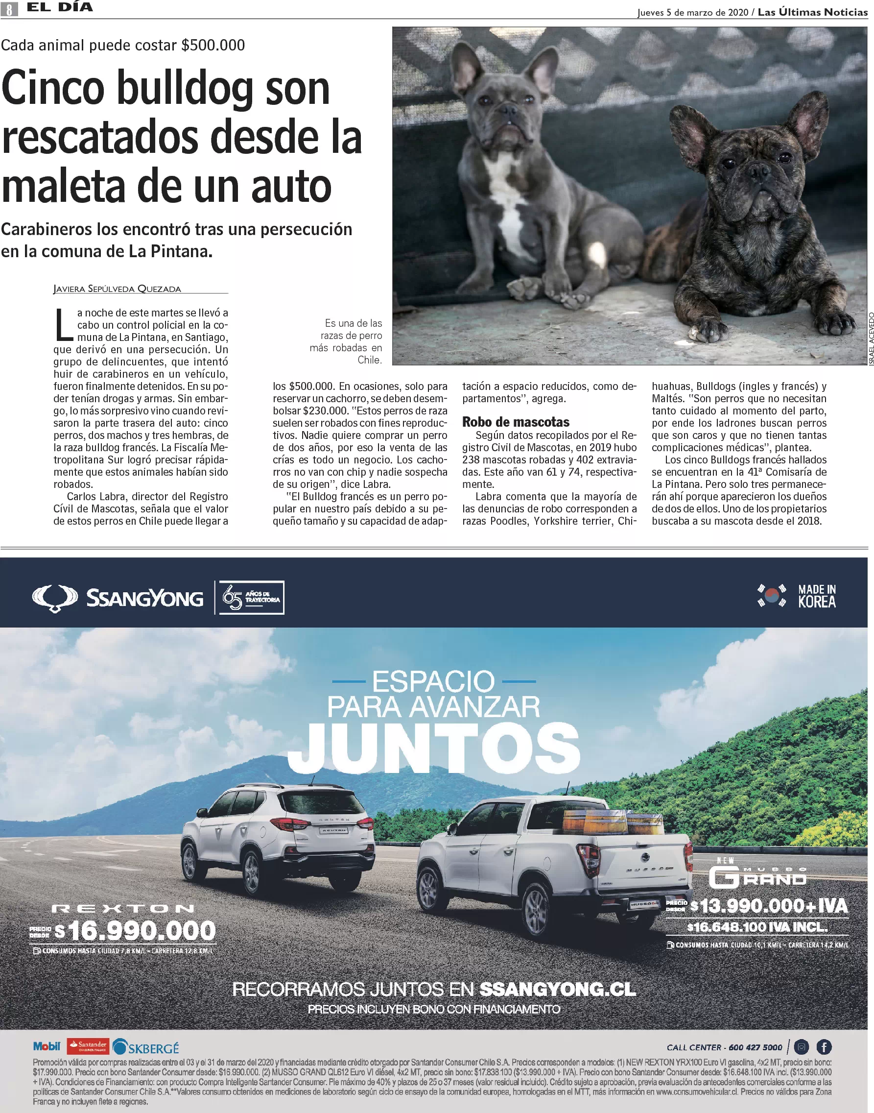 Cinco bulldog son rescatados desde la maleta de un auto