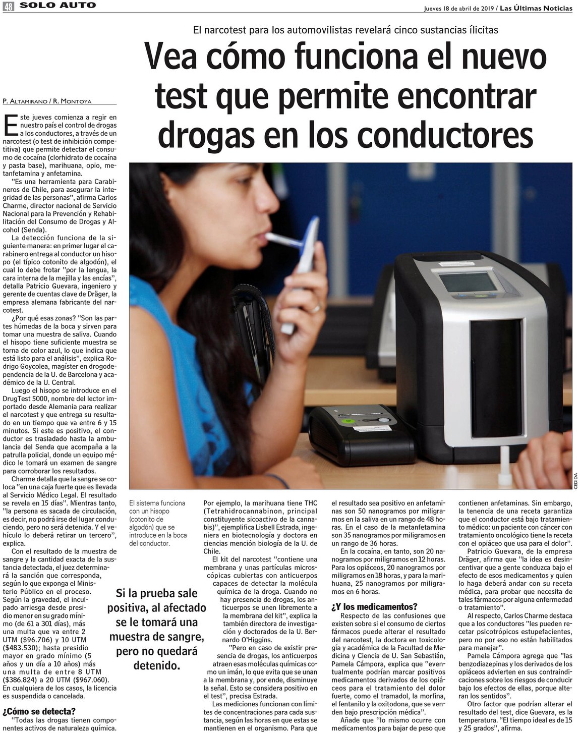 Vea cómo funciona el nuevo test que permite encontrar drogas en los conductores
