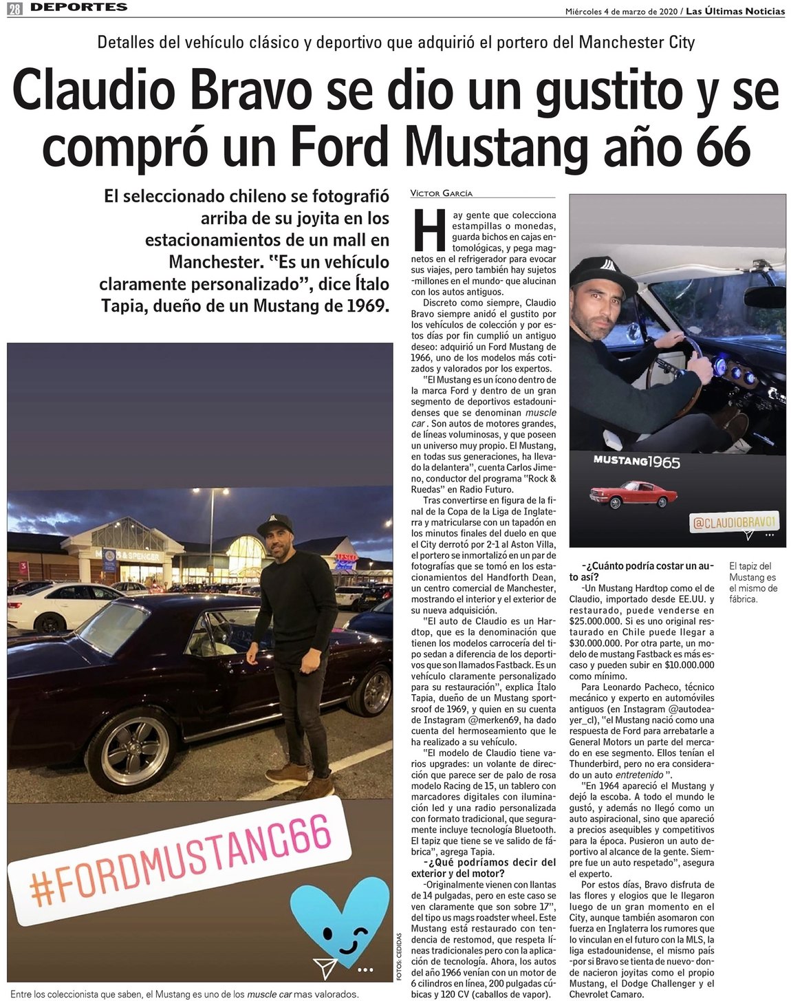 Claudio Bravo se dio un gustito y se compró un Ford Mustang año 66