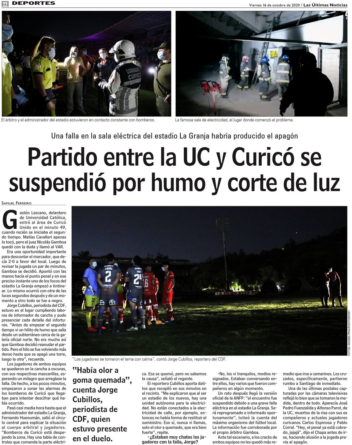 Partido entre la UC y Curicó se suspendió por humo y corte de luz