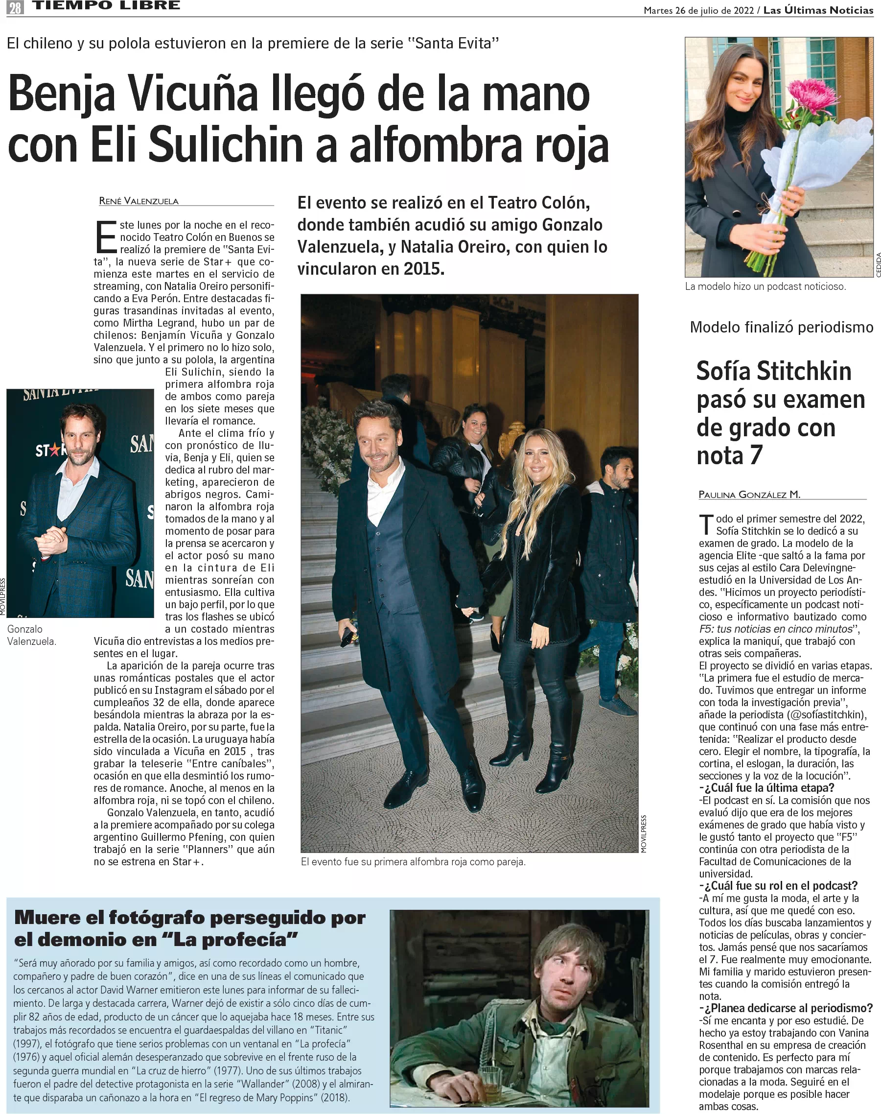 Benja Vicuña llegó de la mano con Eli Sulichin a alfombra roja