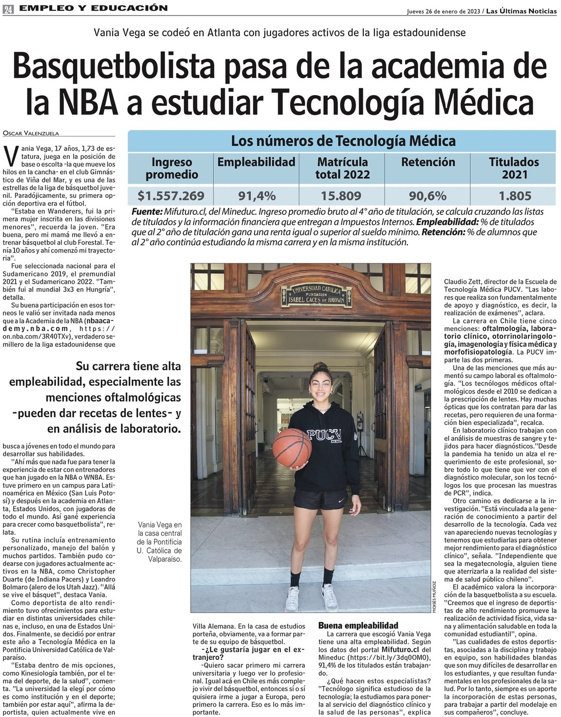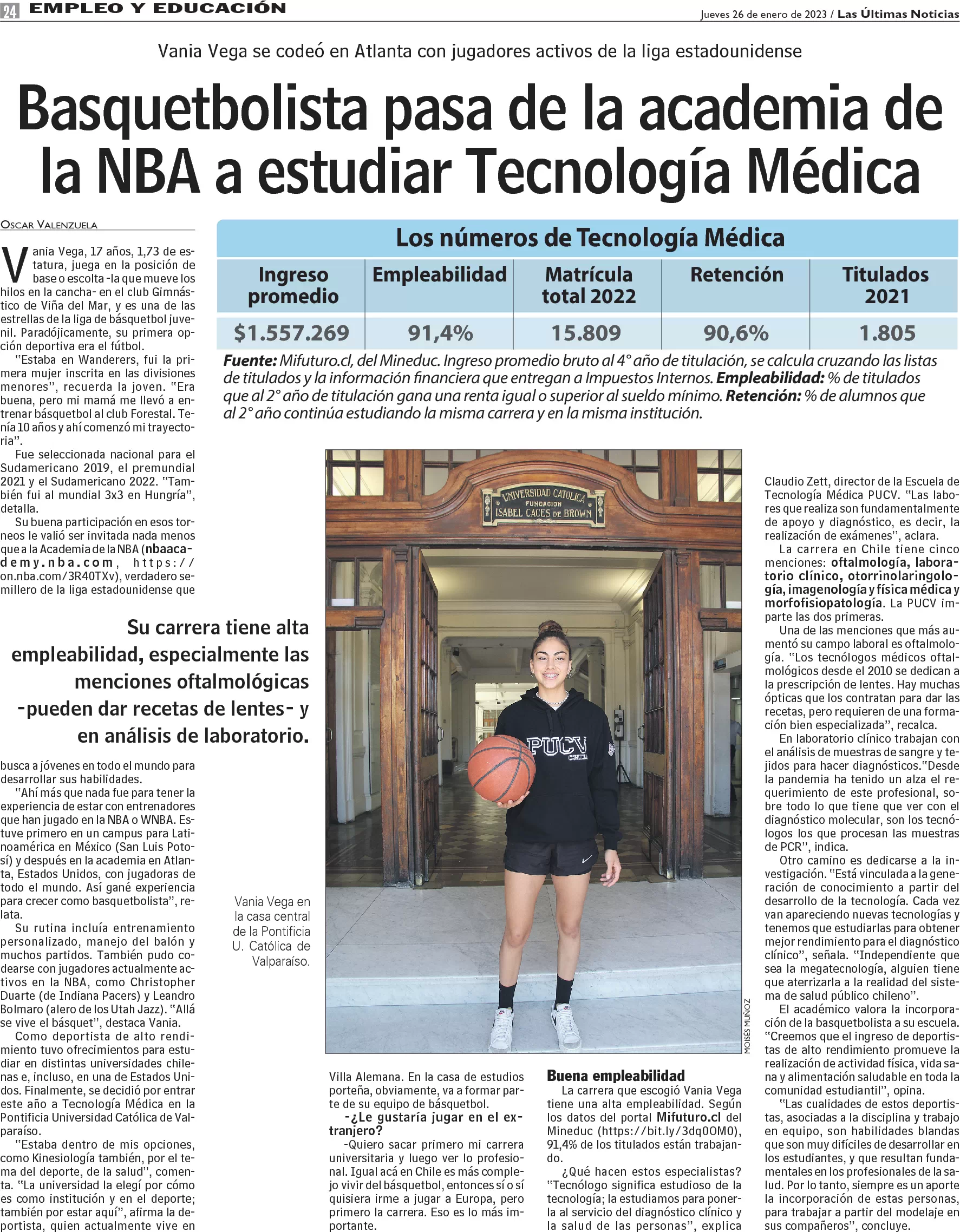 Basquetbolista pasa de la academia de la NBA a estudiar Tecnología Médica