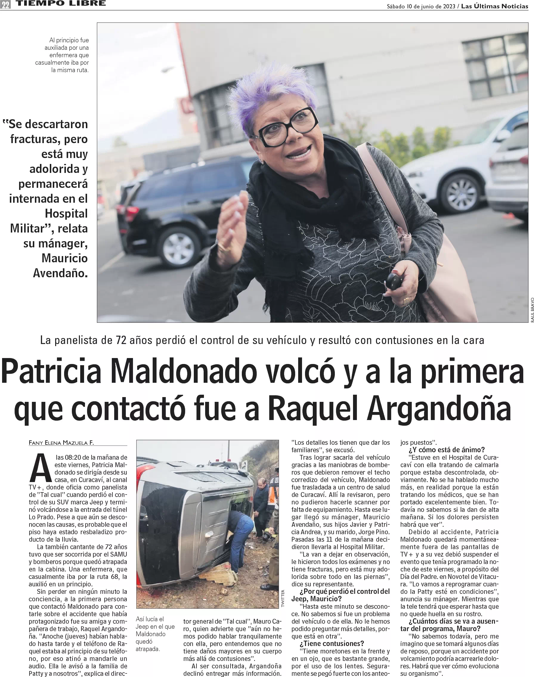 Patricia Maldonado volcó y a la primera que contactó fue a Raquel Argandoña