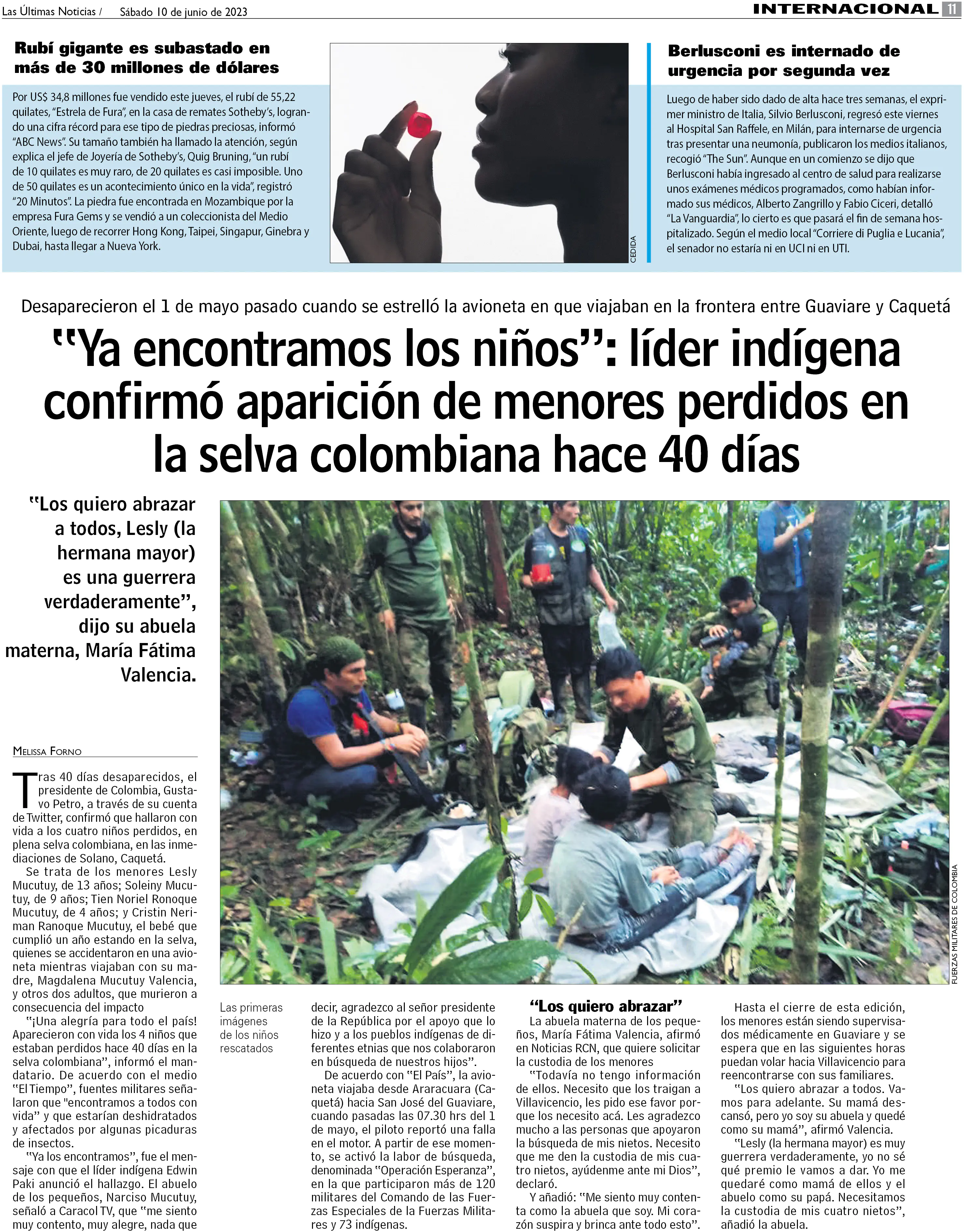 Cuatro niños sobrevivieron solos 40 días en la selva: "Los encontramos"