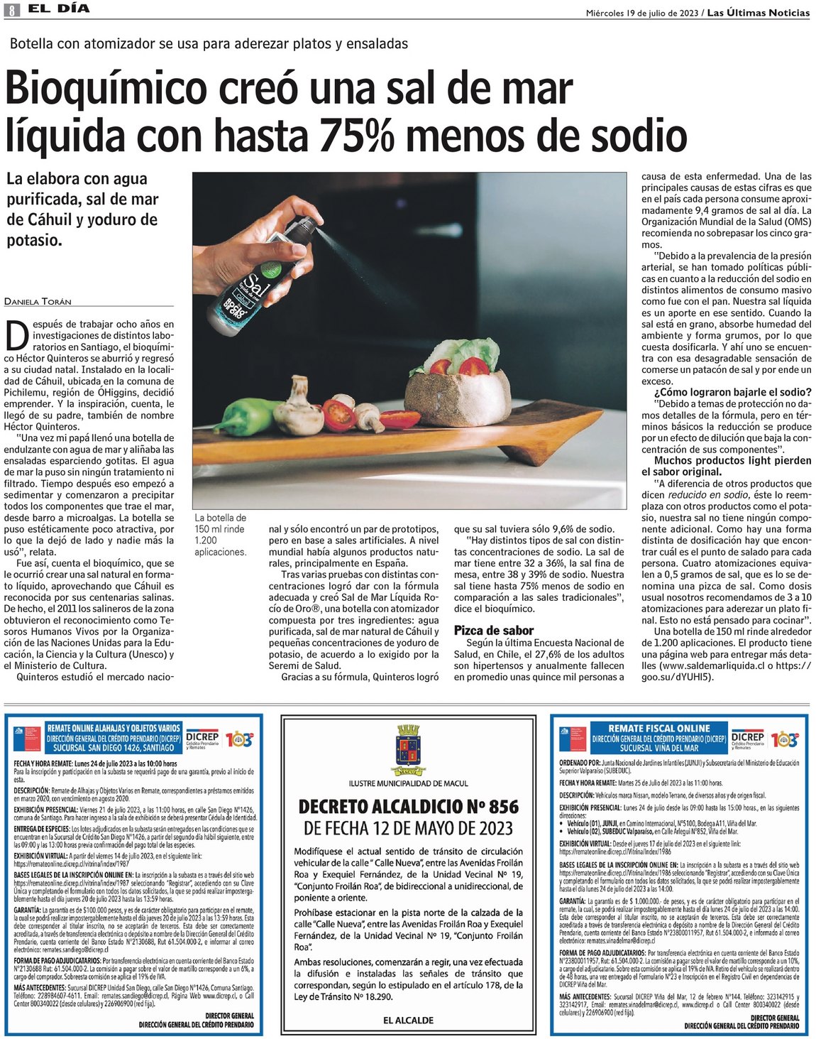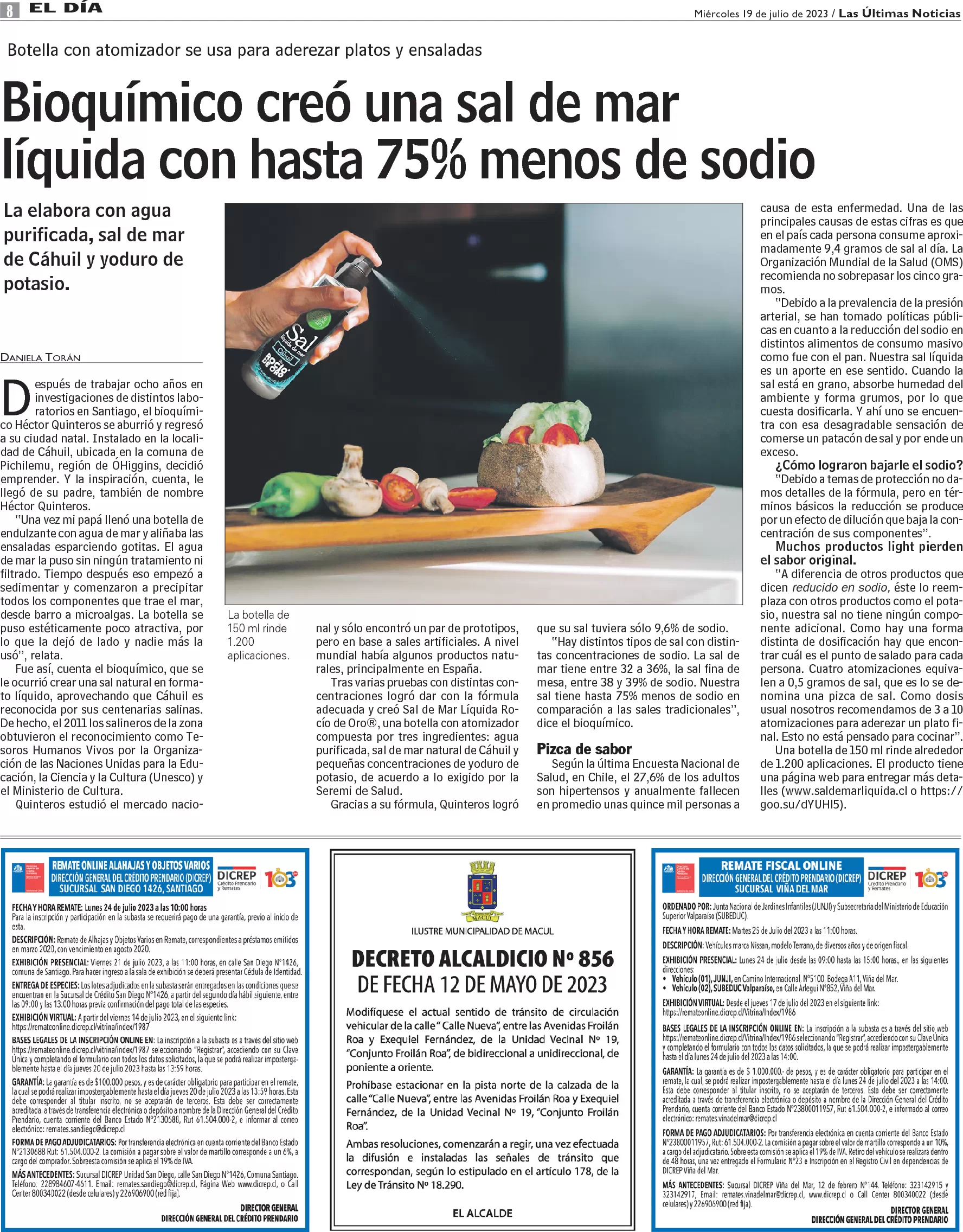 Bioquímico creó una sal de mar líquida con hasta 75% menos de sodio