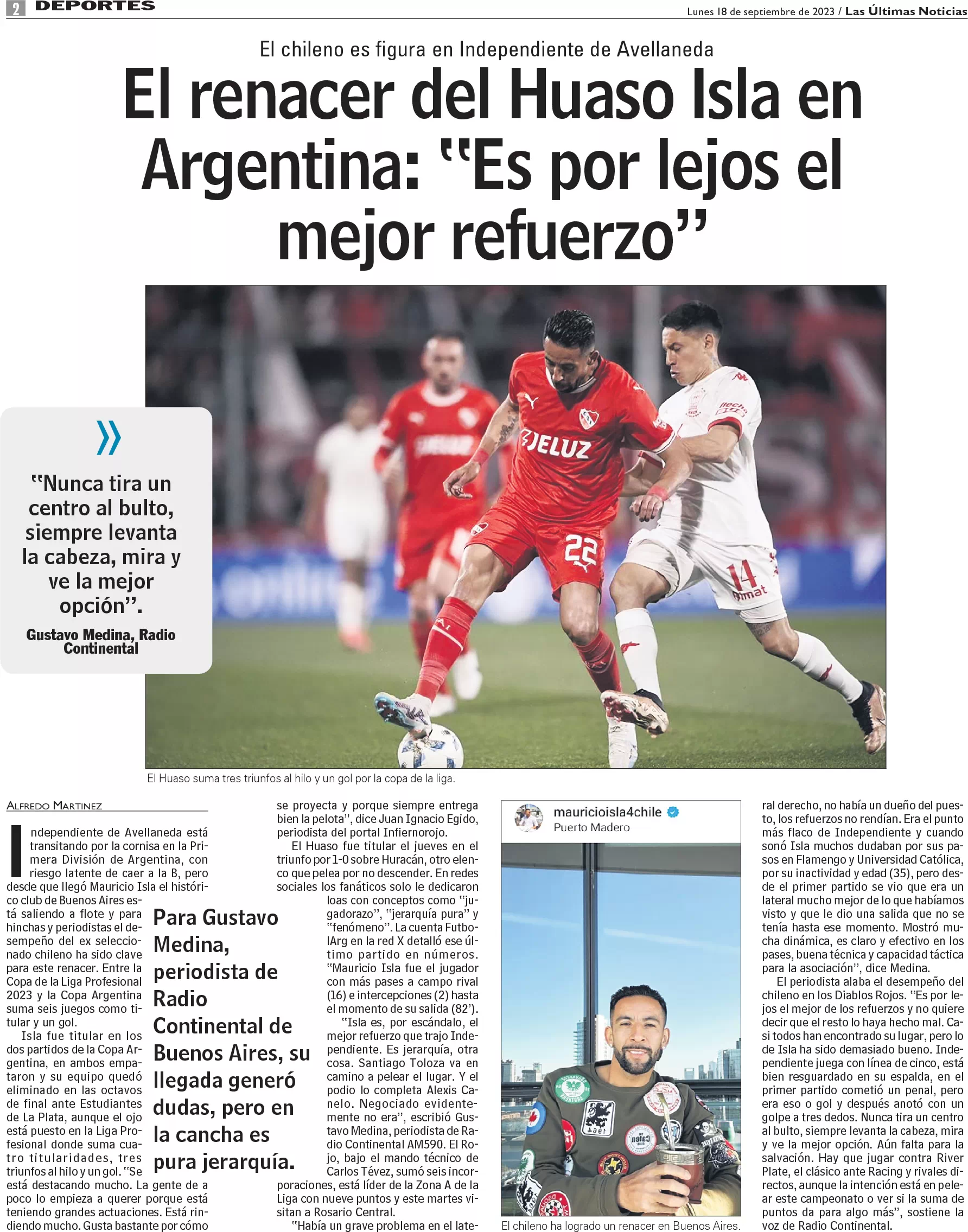 El renacer del Huaso Isla en Argentina: "Es por lejos el mejor refuerzo"