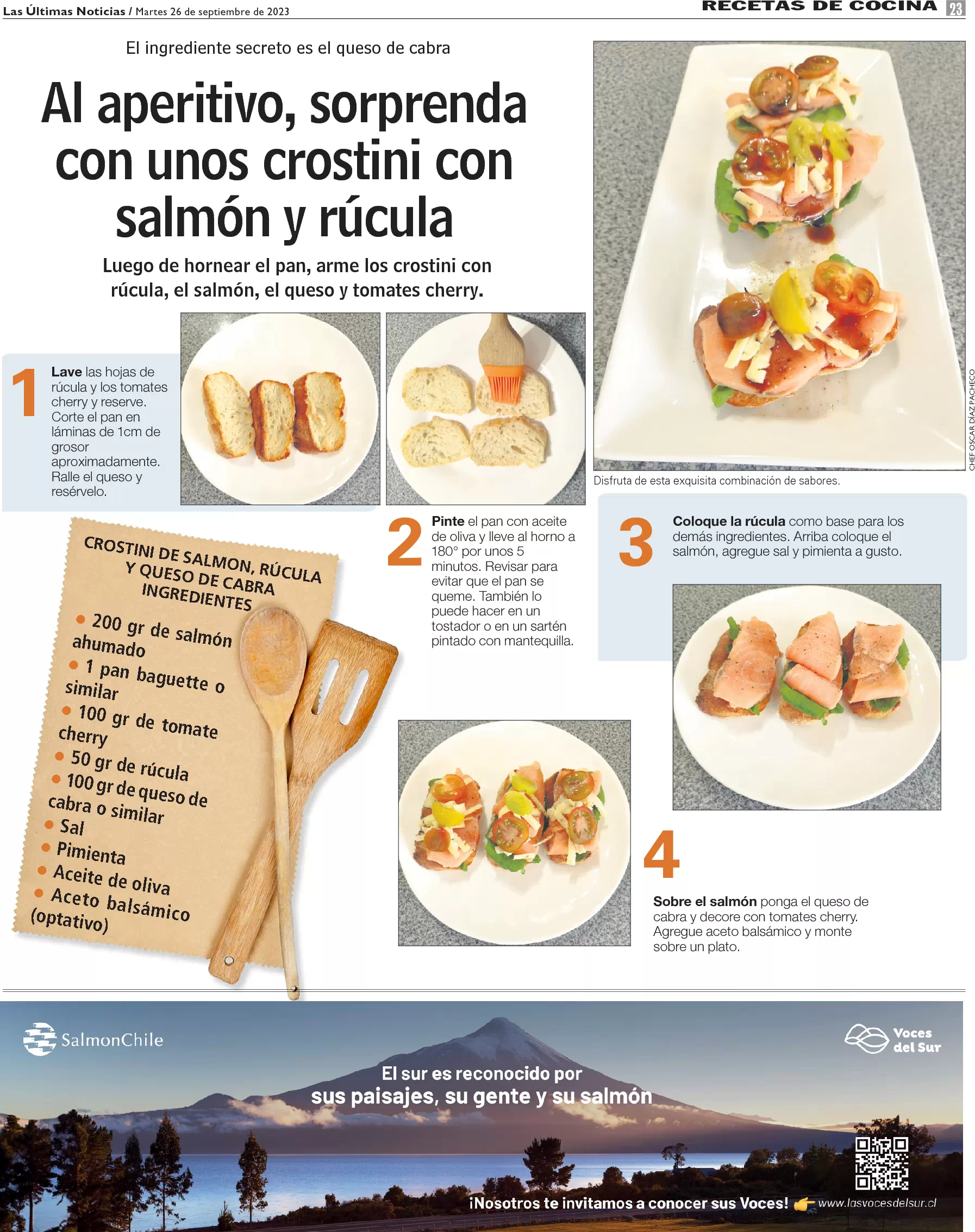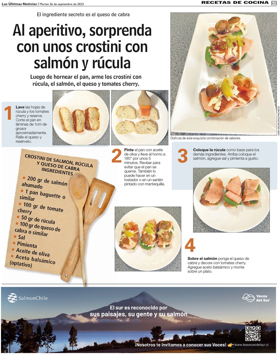 Al aperitivo, sorprenda con unos crostini con salmón y rúcula