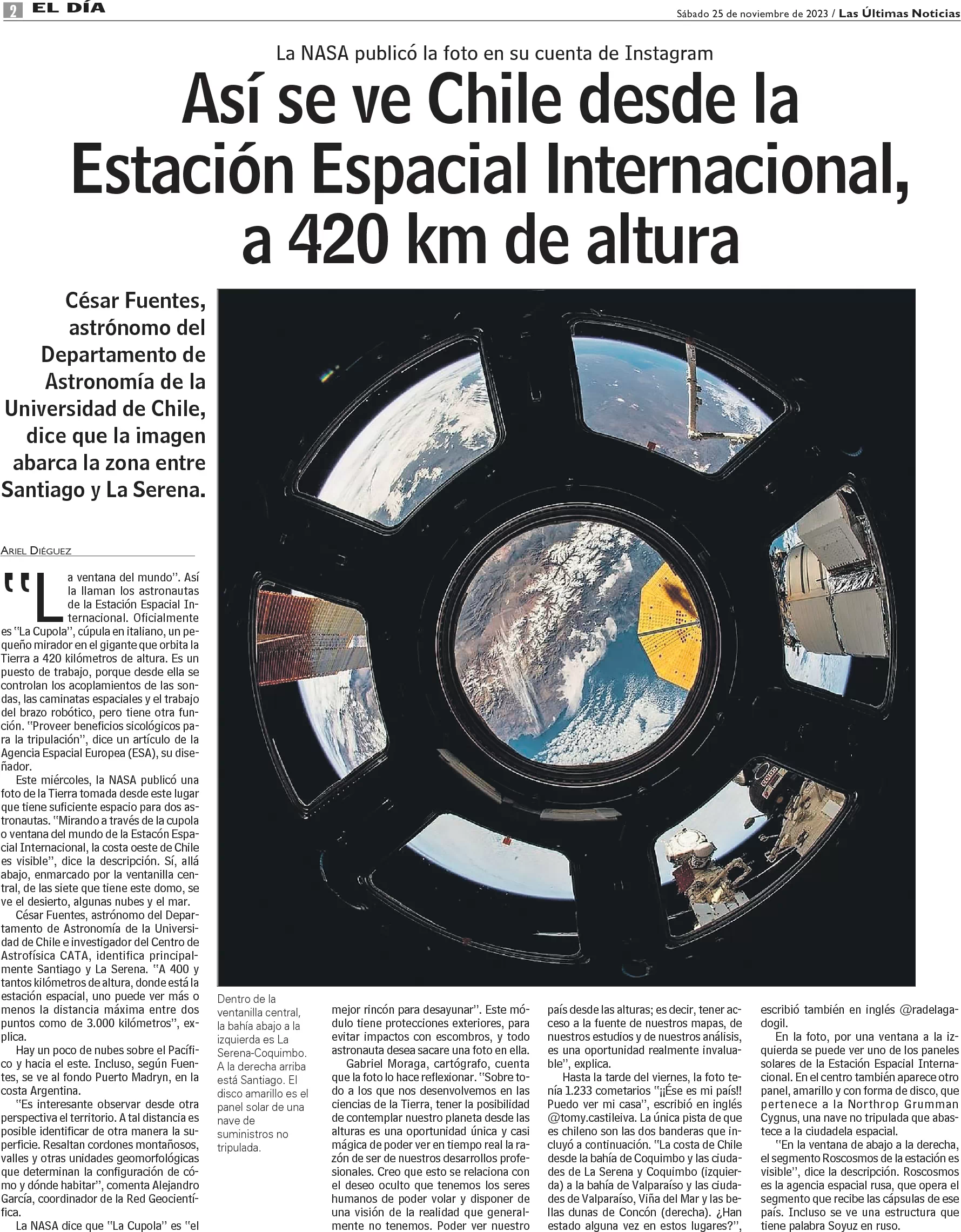 Así se ve Chile desde la Estación Espacial Internacional, a 420 km de altura