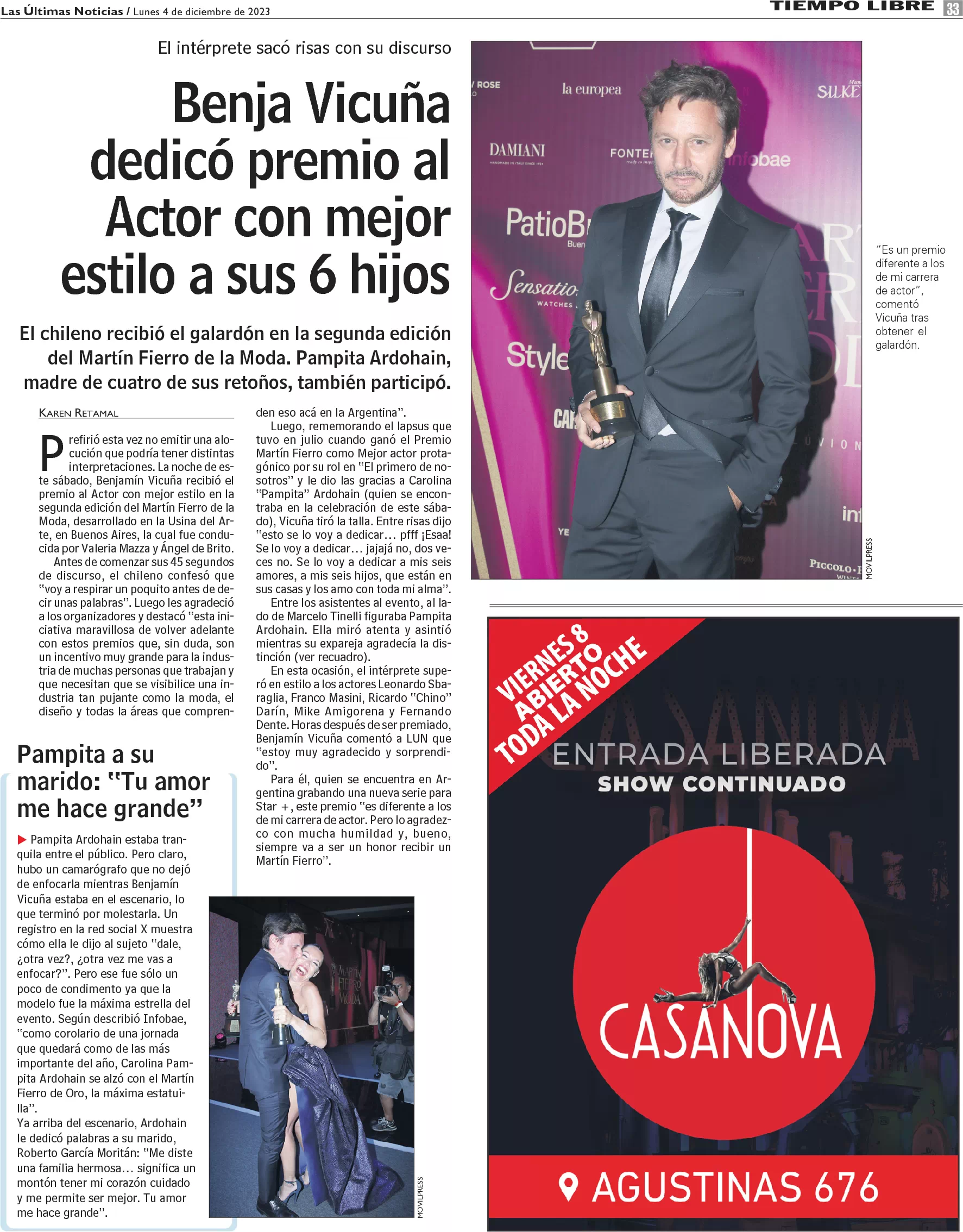 Benja Vicuña dedicó premio al Actor con mejor estilo a sus 6 hijos