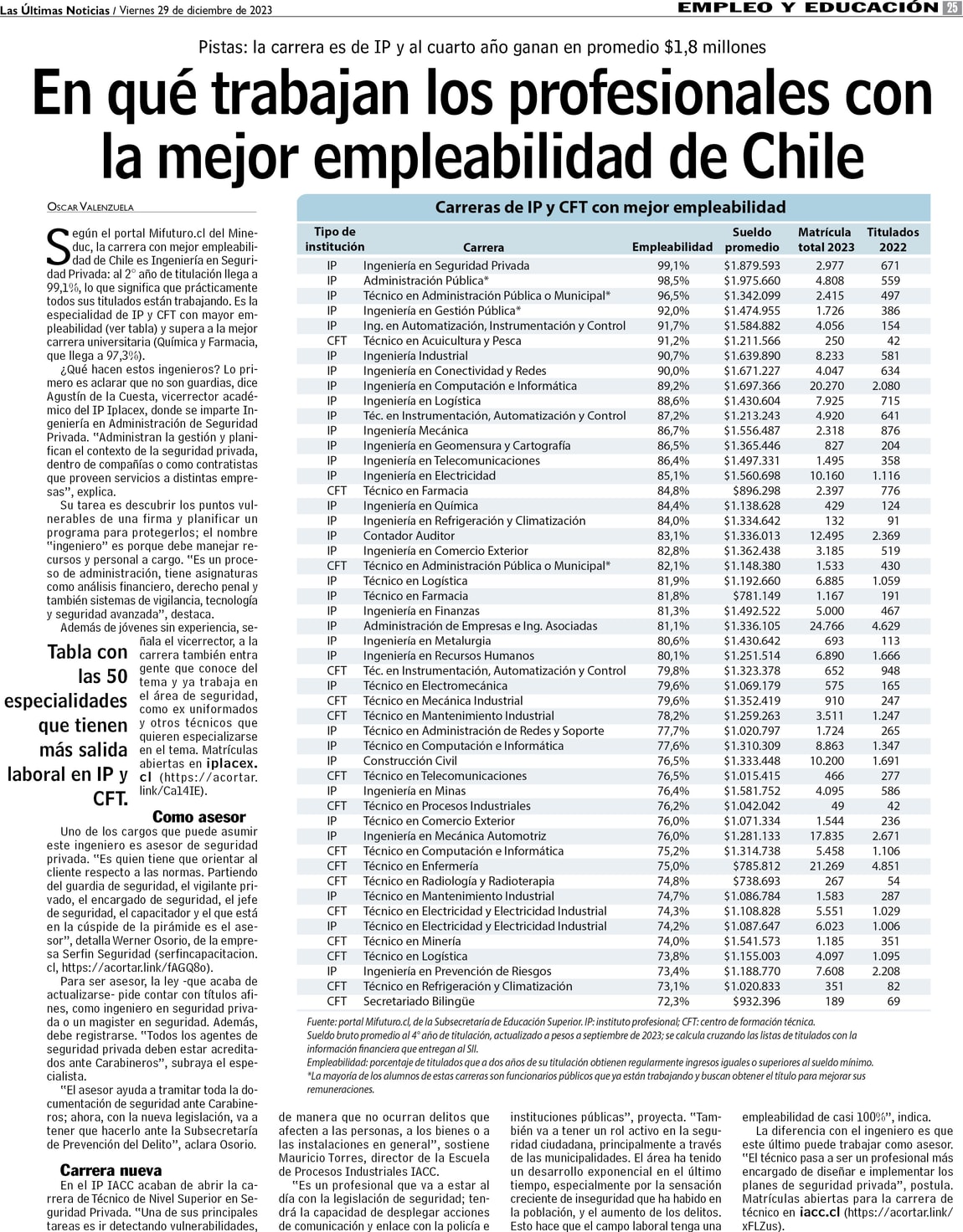 En qué trabajan los profesionales con la mejor empleabilidad de Chile