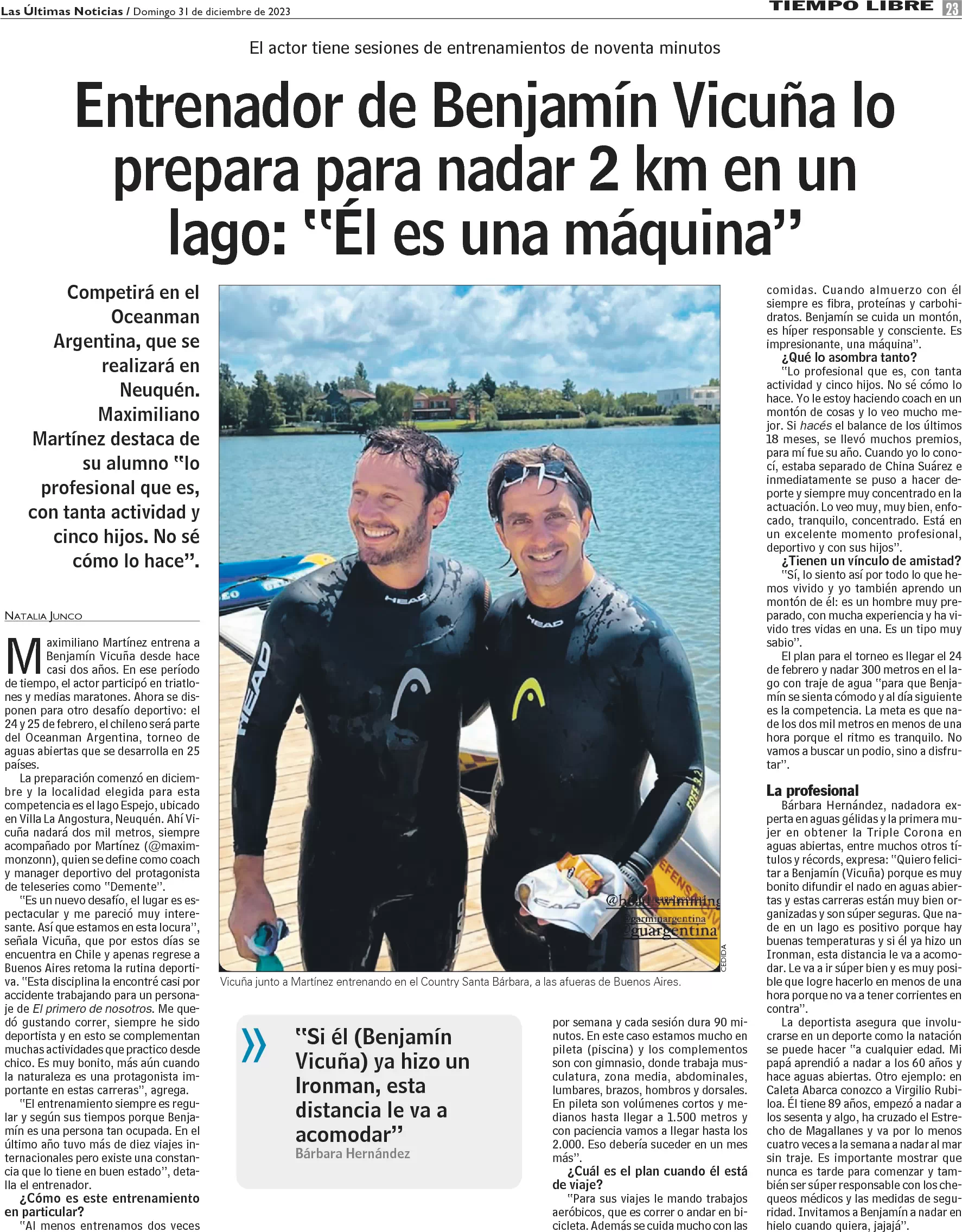 Entrenador de Benjamín Vicuña lo prepara para nadar 2 km en un lago: "Él es una máquina"