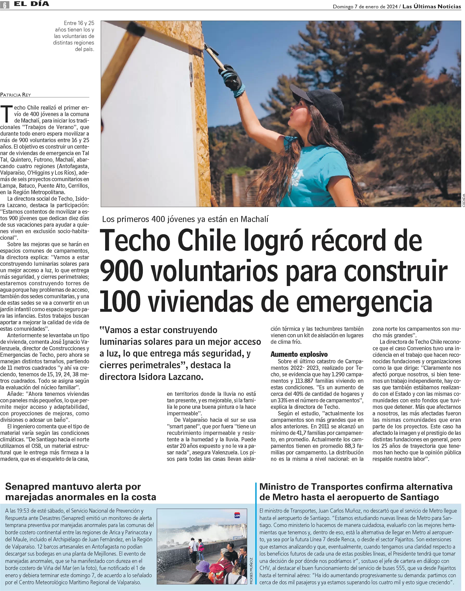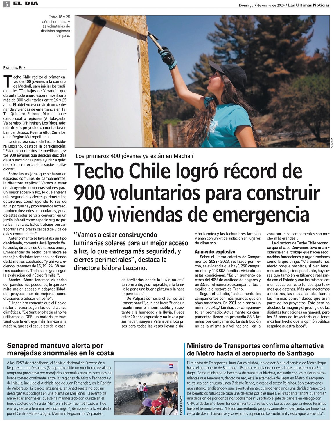 Techo Chile logró récord de 900 voluntarios para construir 100 viviendas de emergencia