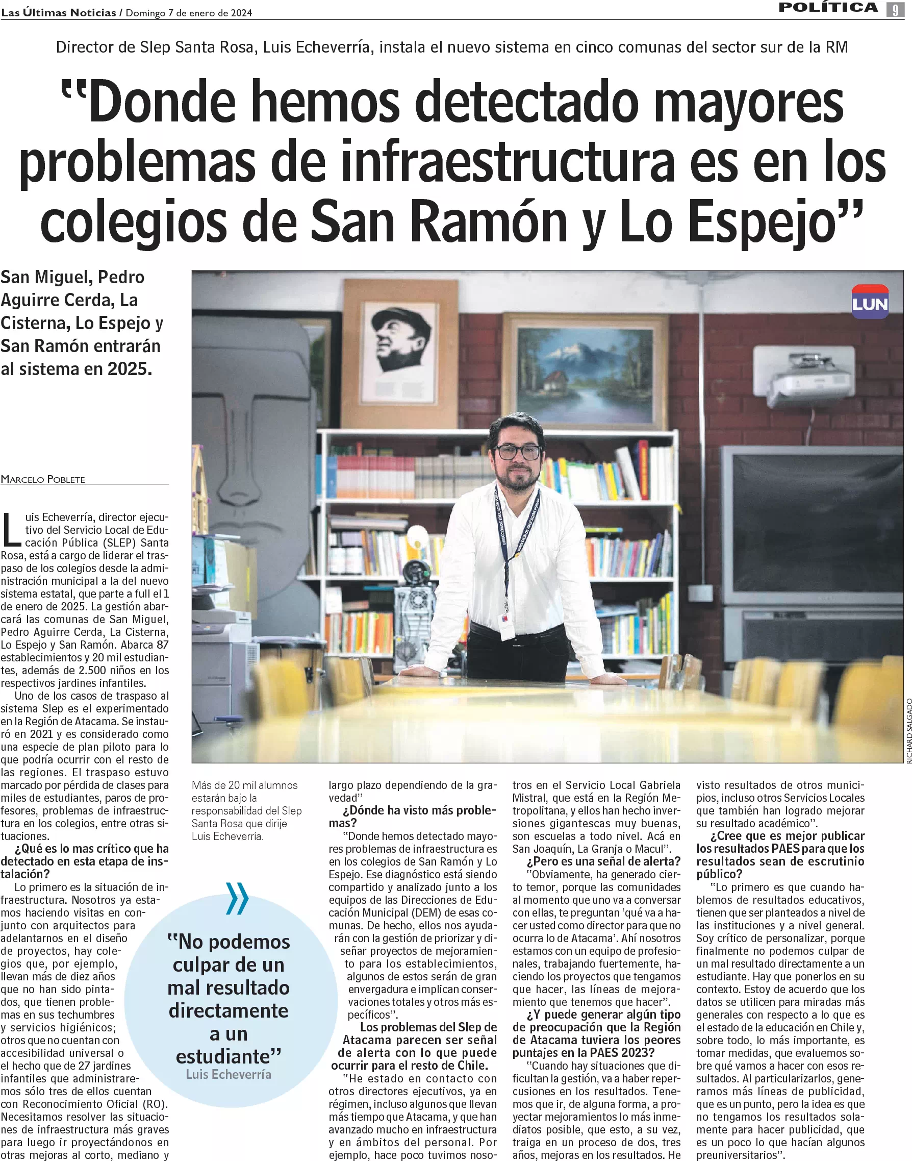 "Donde hemos detectado mayores problemas de infraestructura es en los colegios de San Ramón y Lo Espejo"