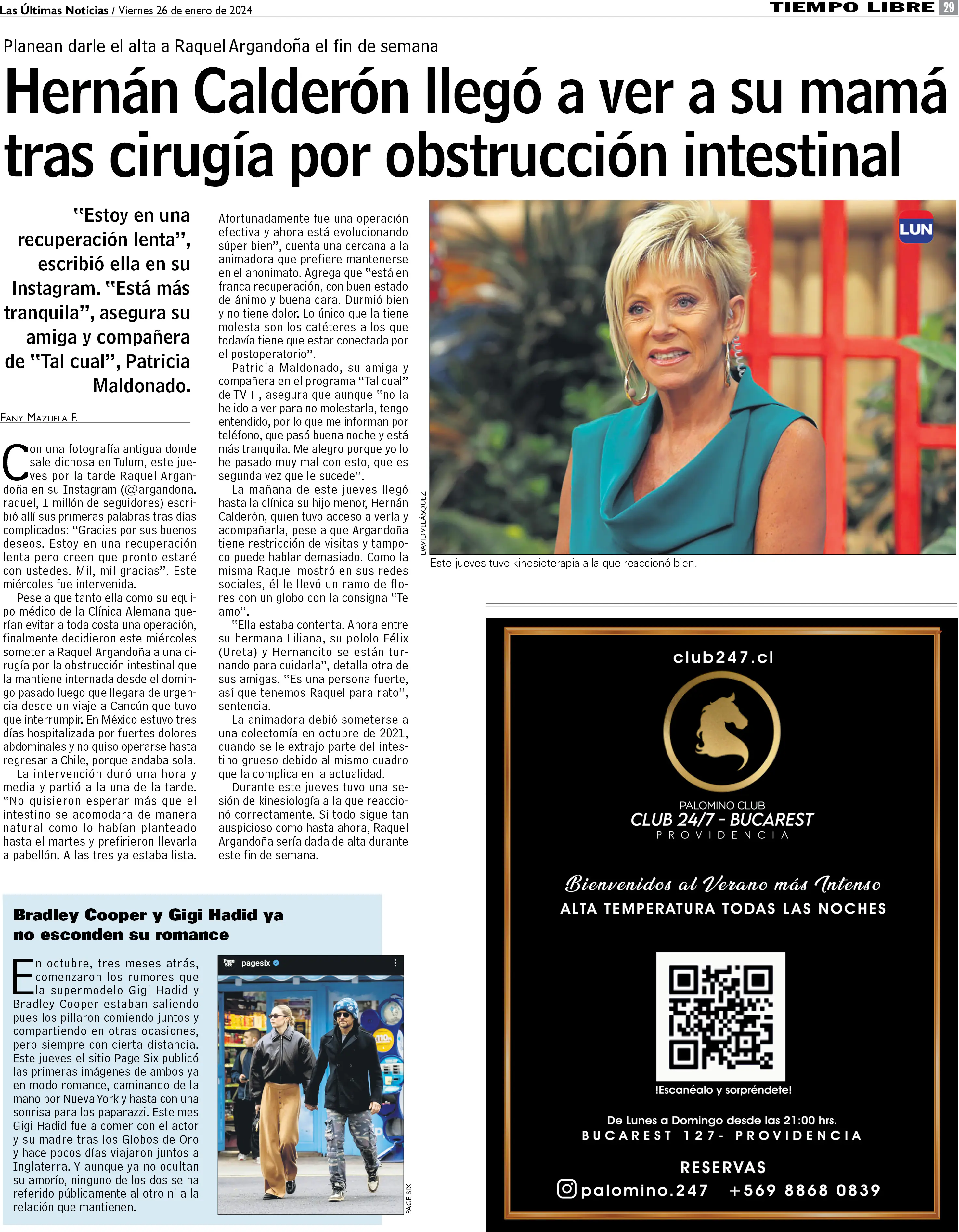Hernán Calderón llegó a ver a su mamá tras cirugía por obstrucción intestinal