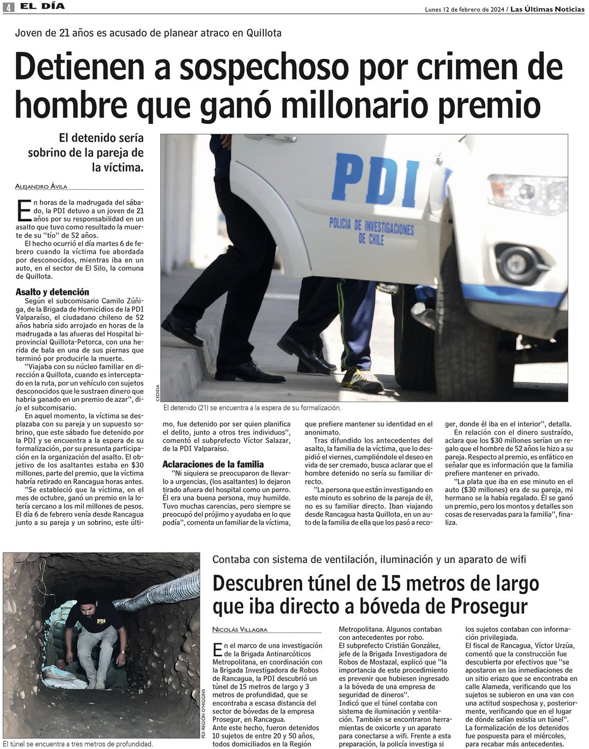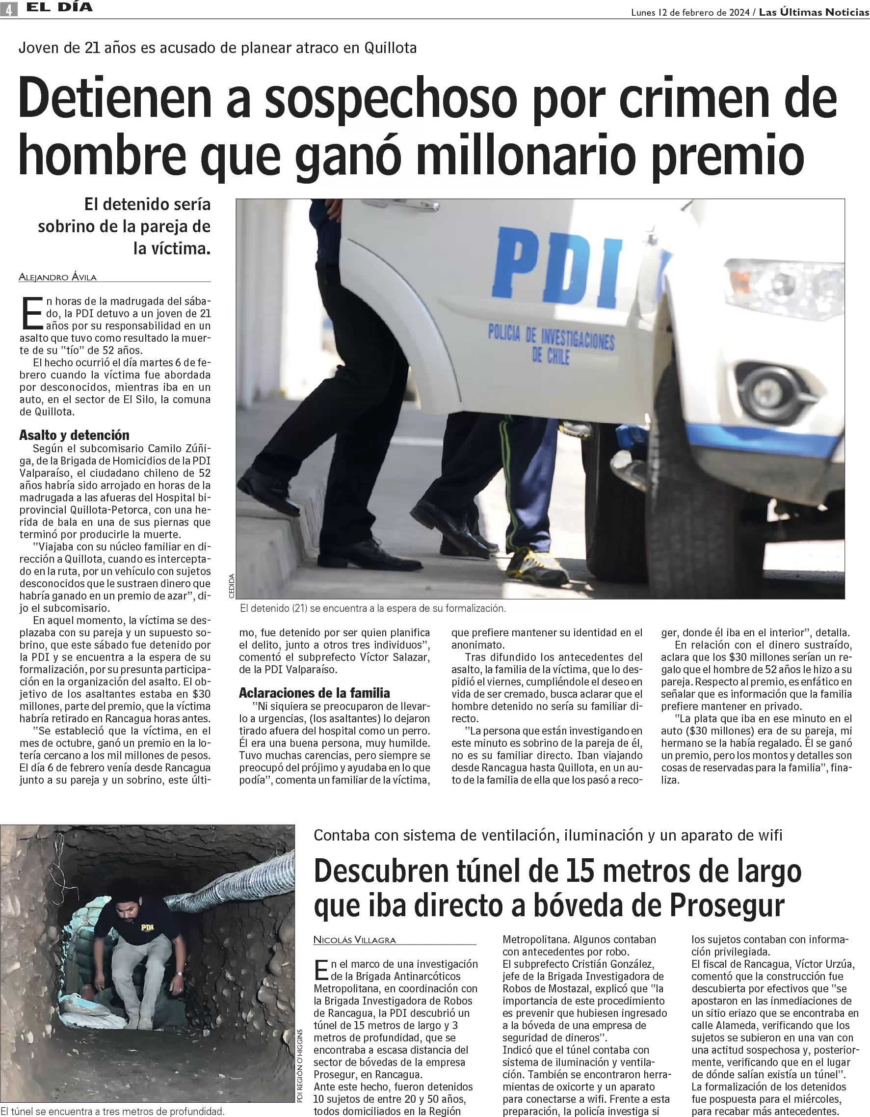 Descubren túnel de 15 metros de largo que iba directo a bóveda de Prosegur