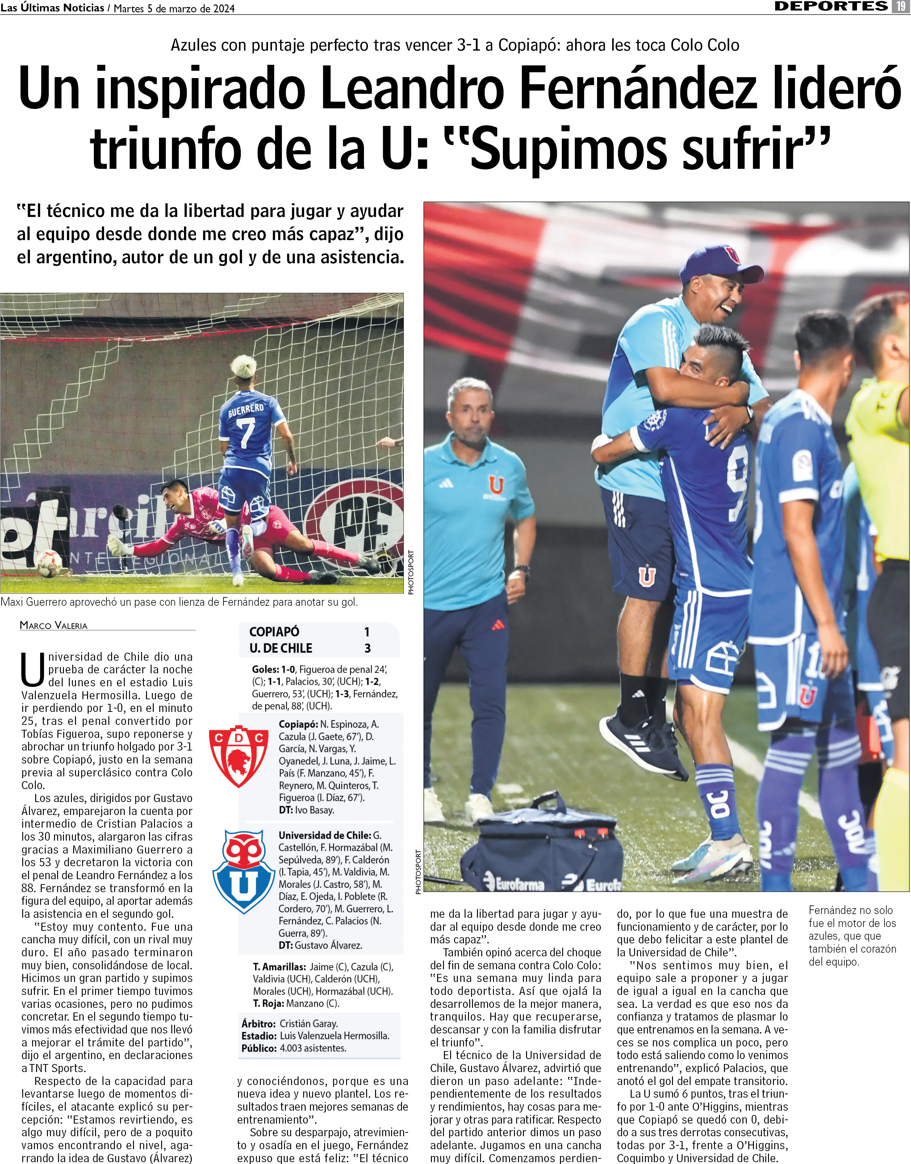 Leandro Fernández lideró el 3-1 de la U a Copiapó: "Supimos sufrir"