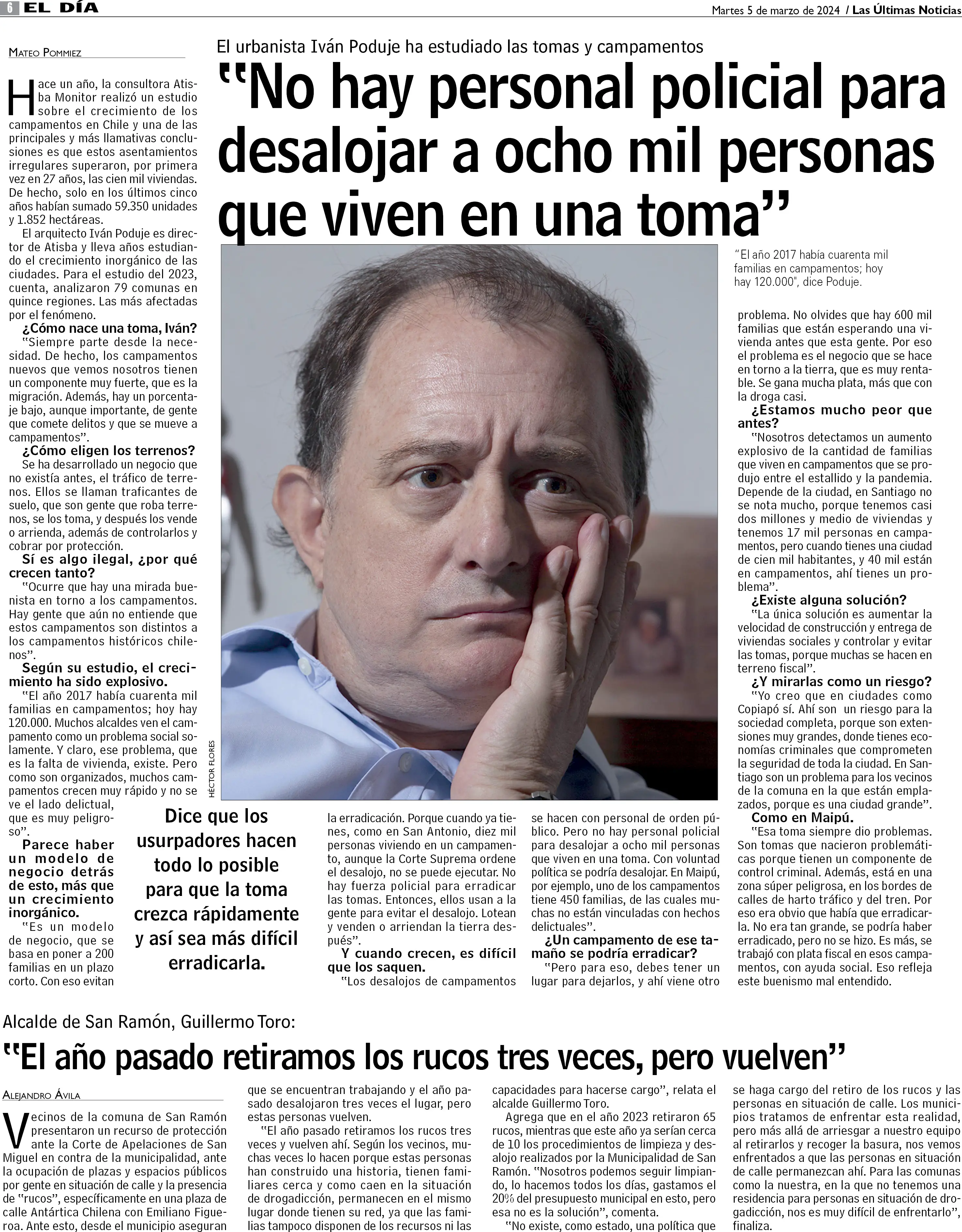 "No hay personal policial para desalojar a ocho mil personas que viven en una toma"