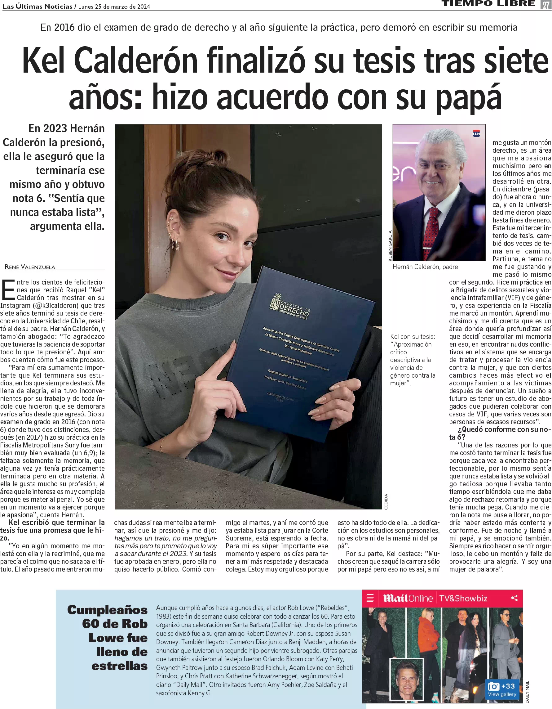 Kel Calderón finalizó su tesis tras siete años: hizo acuerdo con su papá
