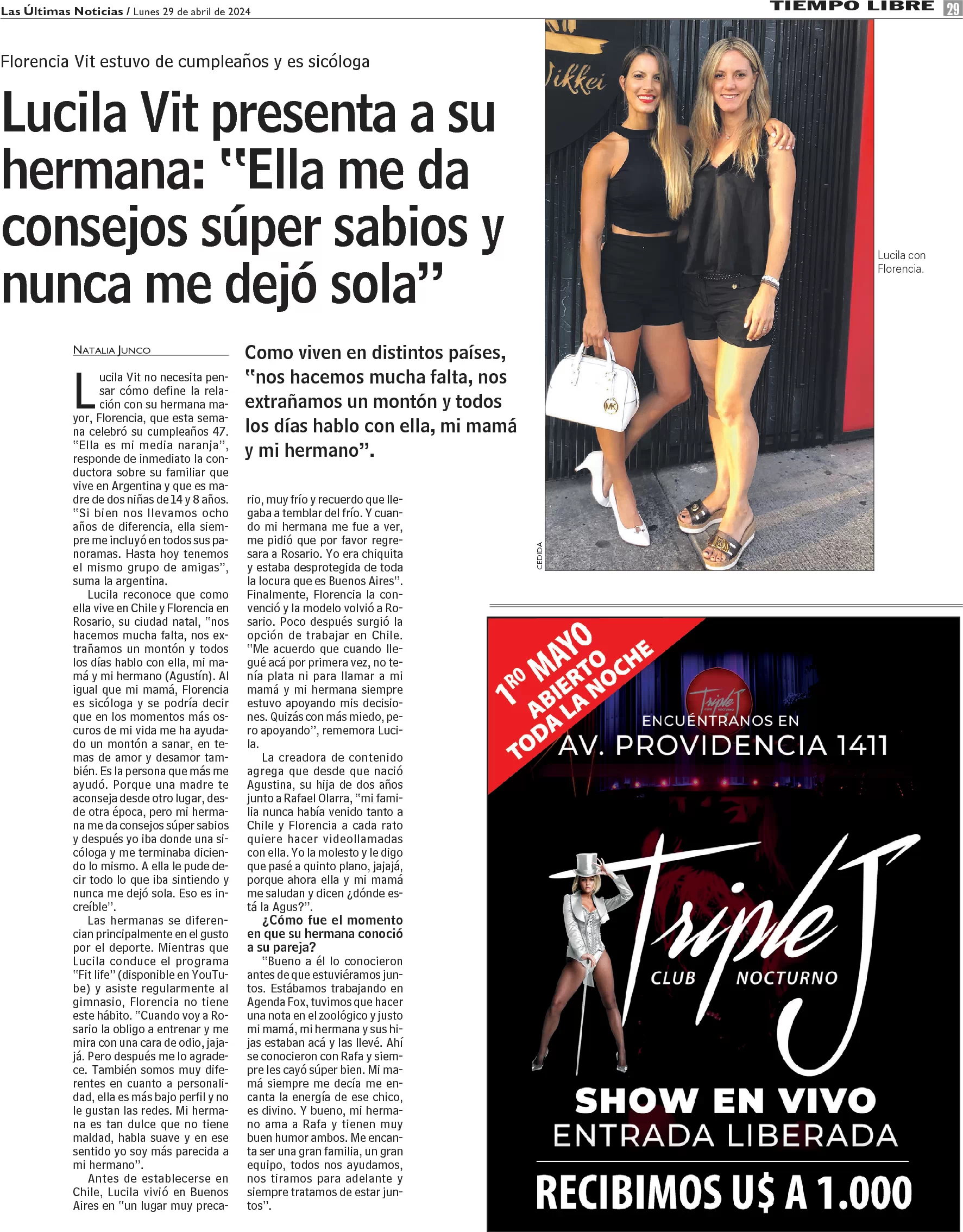 Lucila Vit presenta a su hermana: "Ella me da consejos súper sabios y nunca me dejó sola"