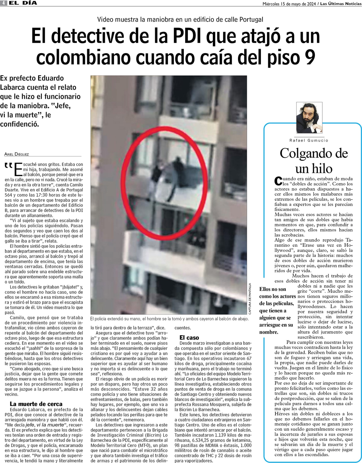 El detective de la PDI que atajó a un colombiano cuando caía del piso 9