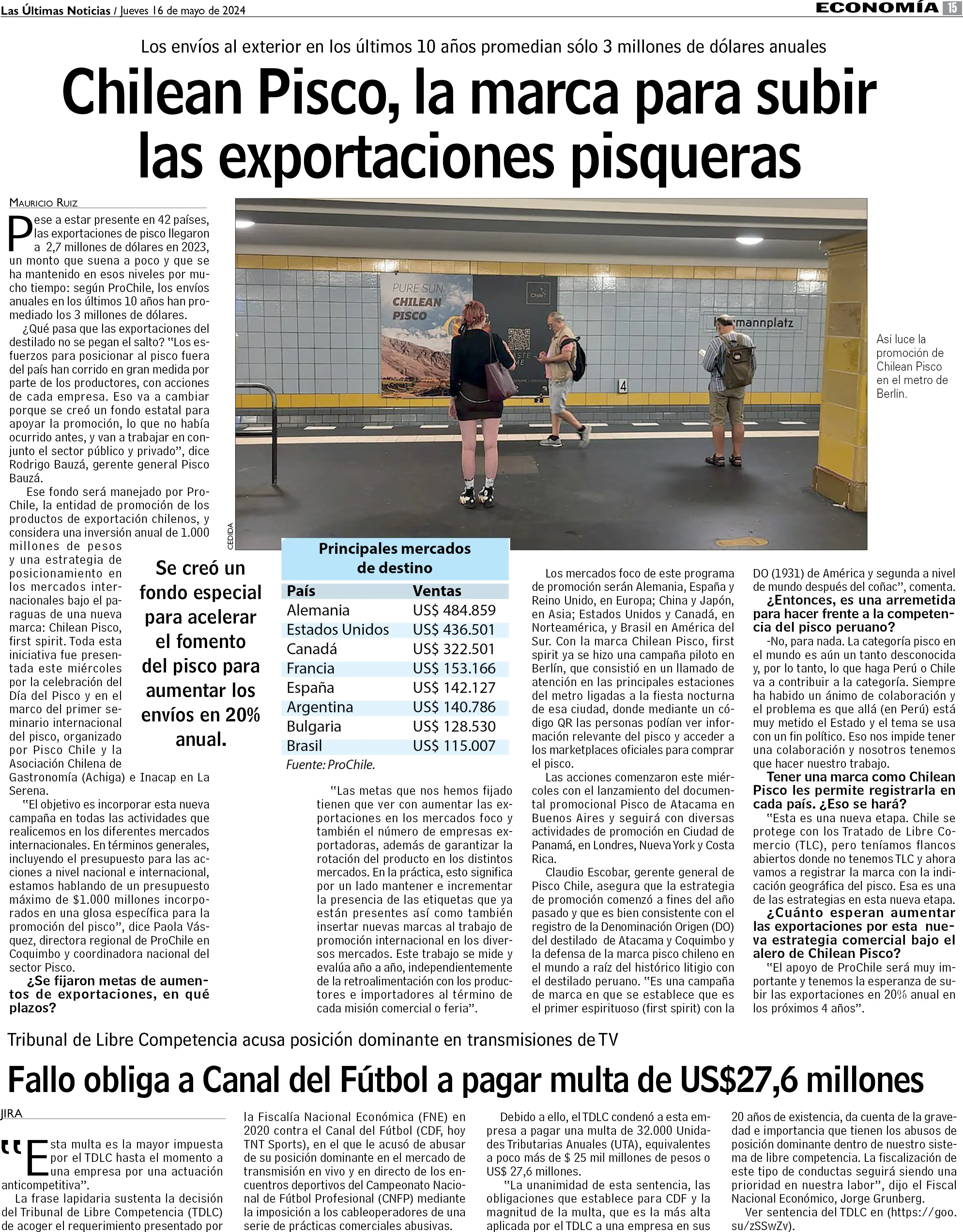 Chilean Pisco, la marca para subir las exportaciones pisqueras