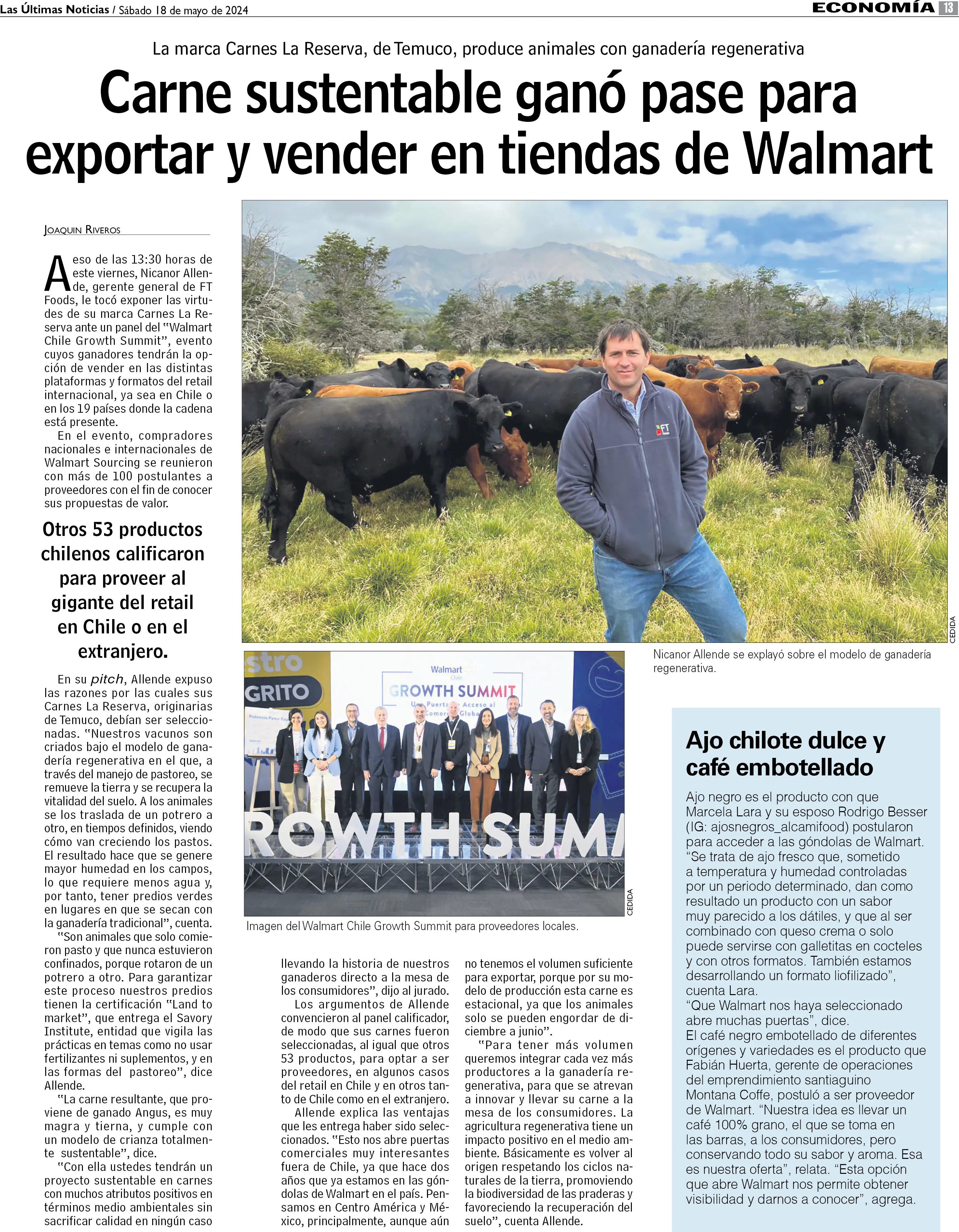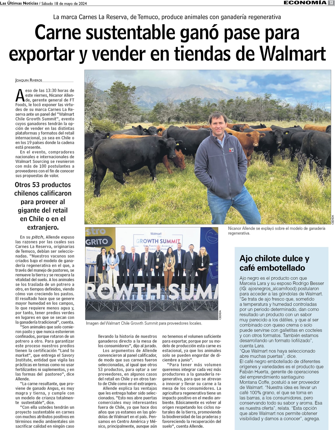 Carne sustentable ganó pase para exportar y vender en tiendas de Walmart