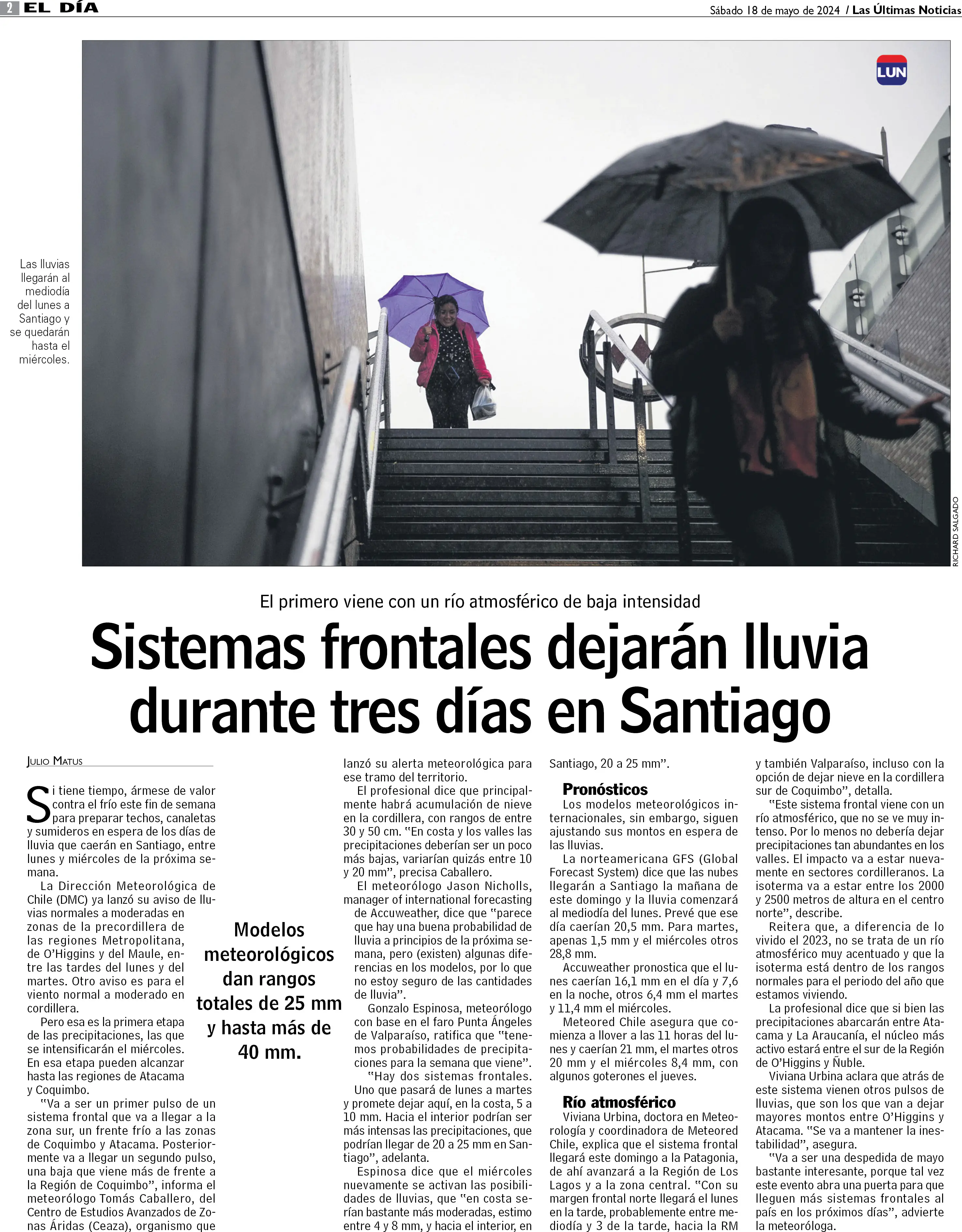 Sistemas frontales dejarán lluvia durante tres días en Santiago