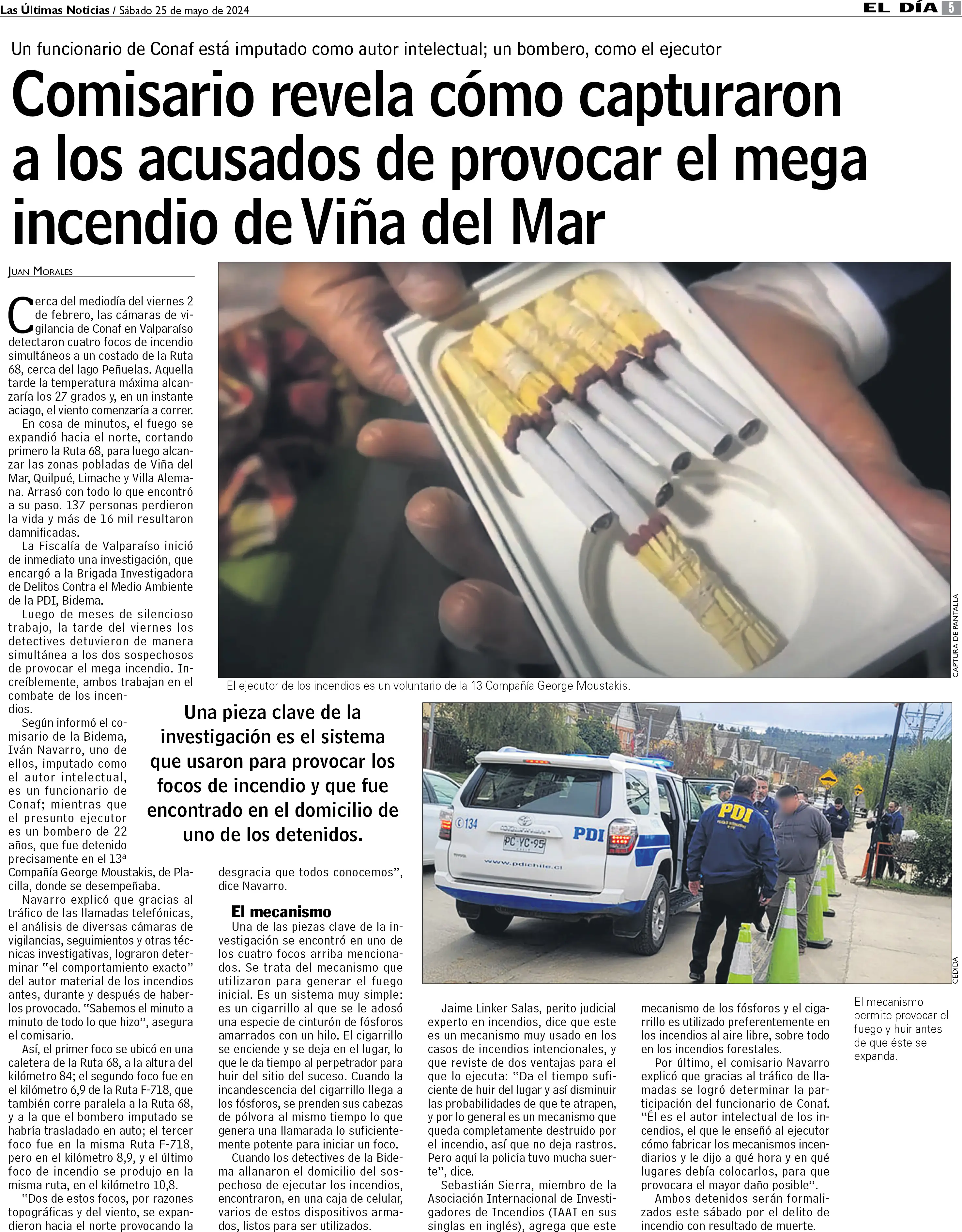 Comisario revela cómo capturaron a los acusados de provocar el mega incendio de Viña del Mar