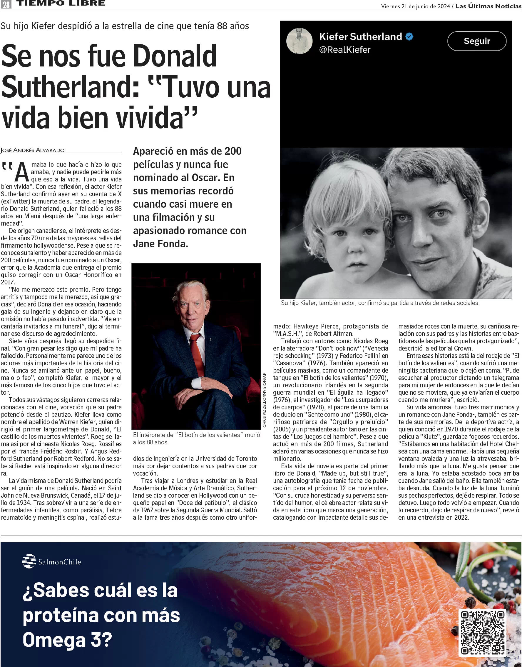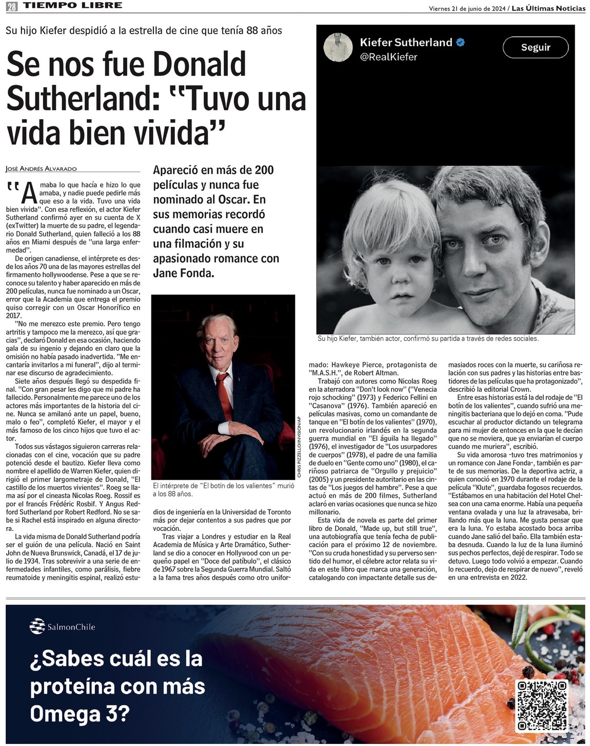 Se nos fue Donald Sutherland: "Tuvo una vida bien vivida"