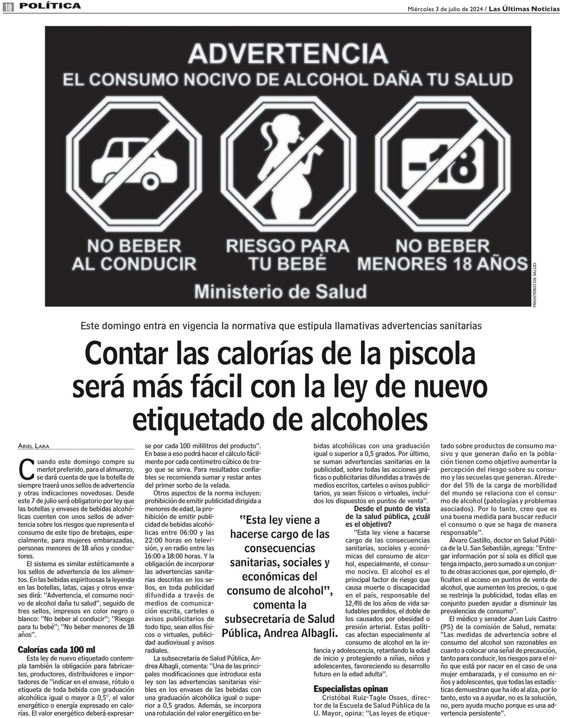 Contar las calorías de la piscola será más fácil con la ley de nuevo etiquetado de alcoholes