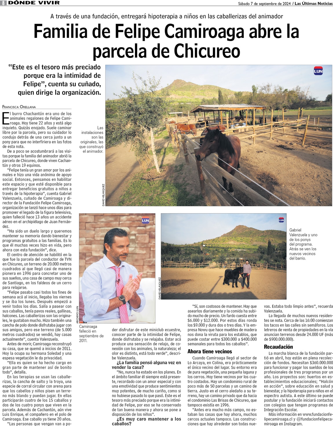 Familia de Felipe Camiroaga abre la parcela de Chicureo