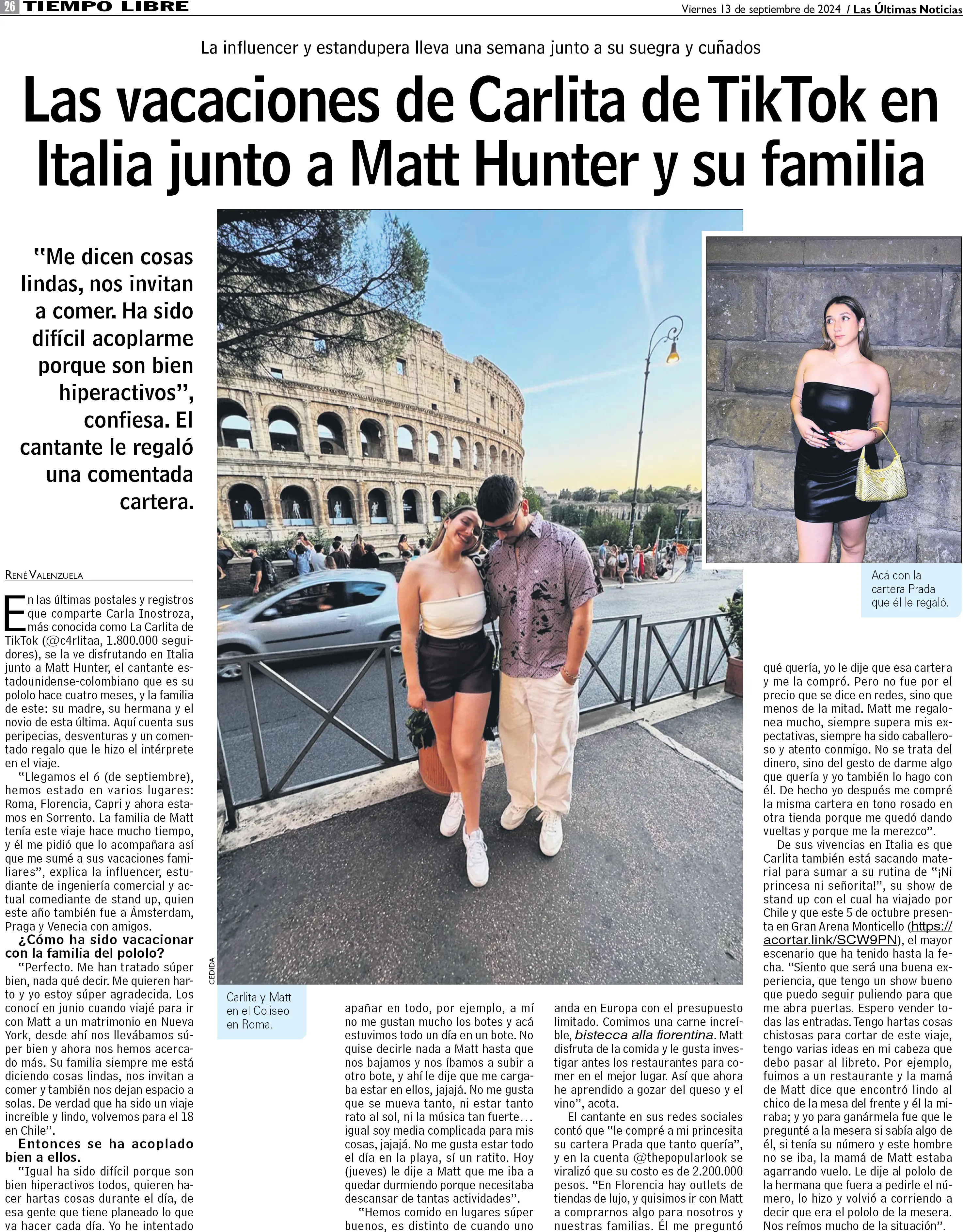Las vacaciones de Carlita de TikTok en Italia junto a Matt Hunter y su familia