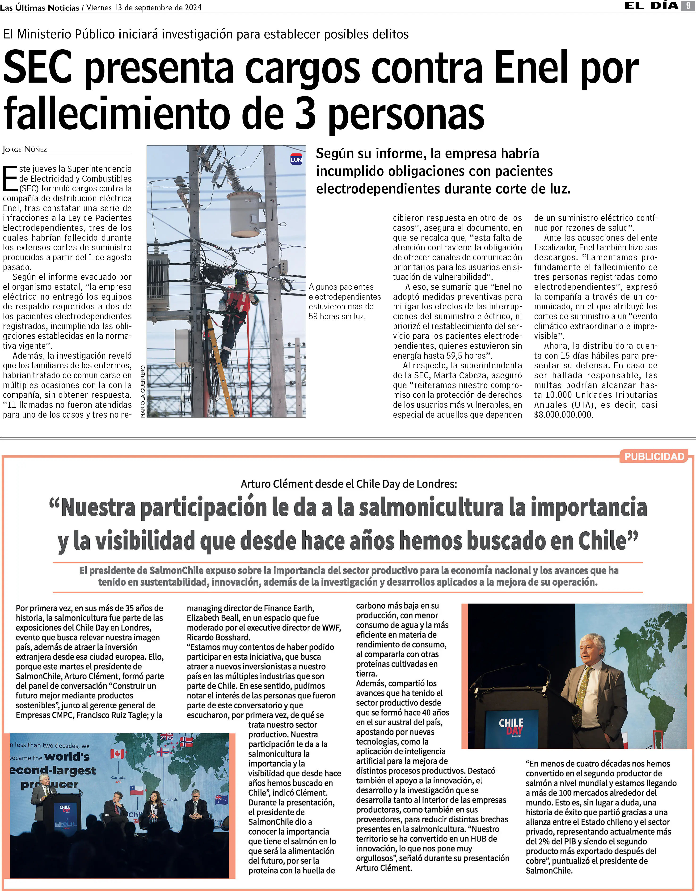 SEC presenta cargos contra Enel por fallecimiento de 3 personas