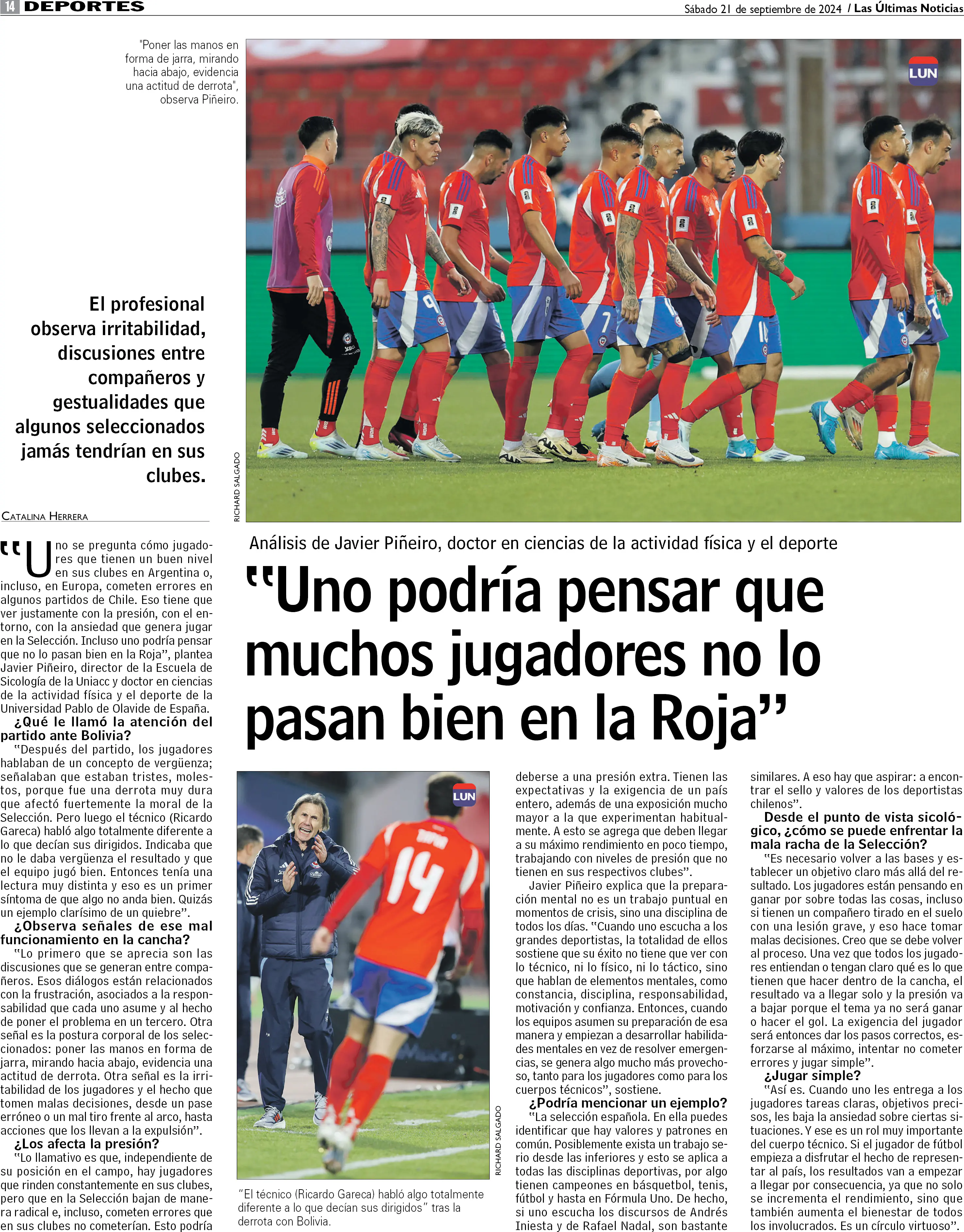 "Uno podría pensar que muchos jugadores no lo pasan bien en la Roja"