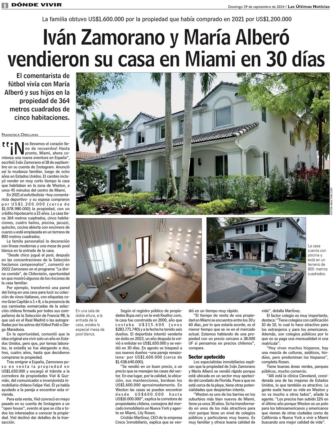 Iván Zamorano y María Alberó vendieron su casa en Miami en 30 días
