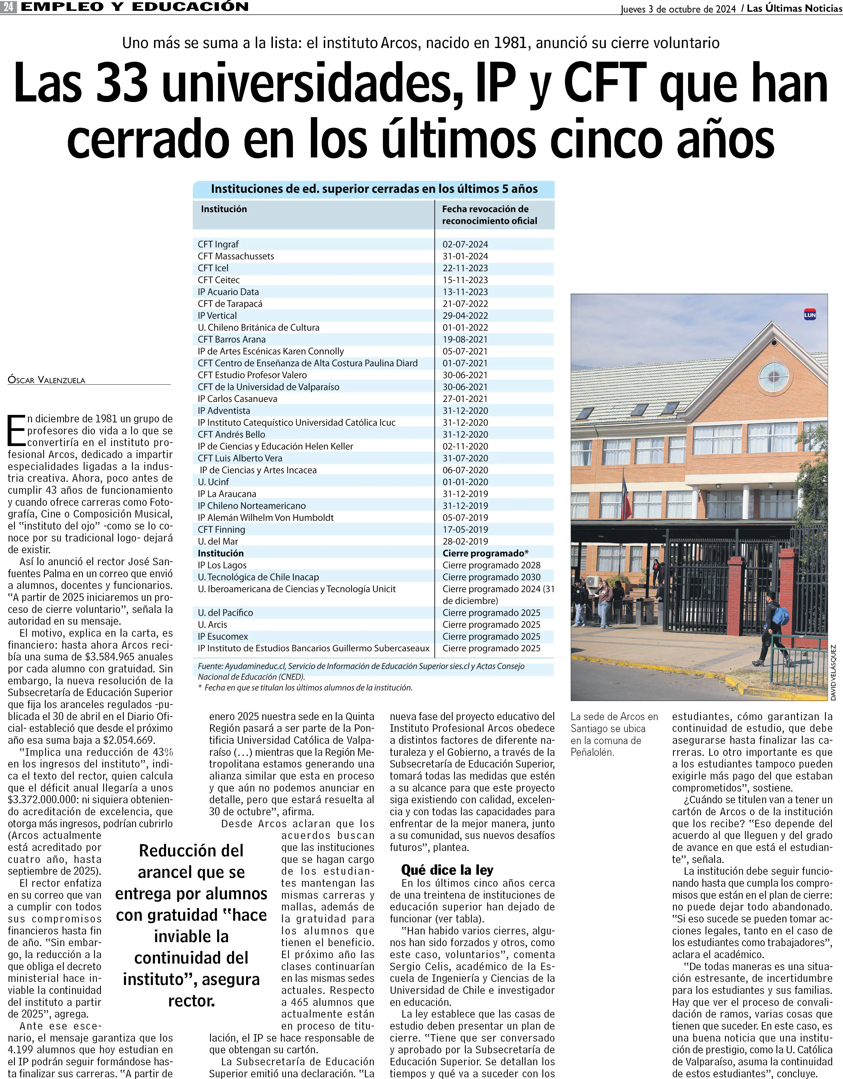 Las 33 universidades, IP y CFT que han cerrado en los últimos cinco años