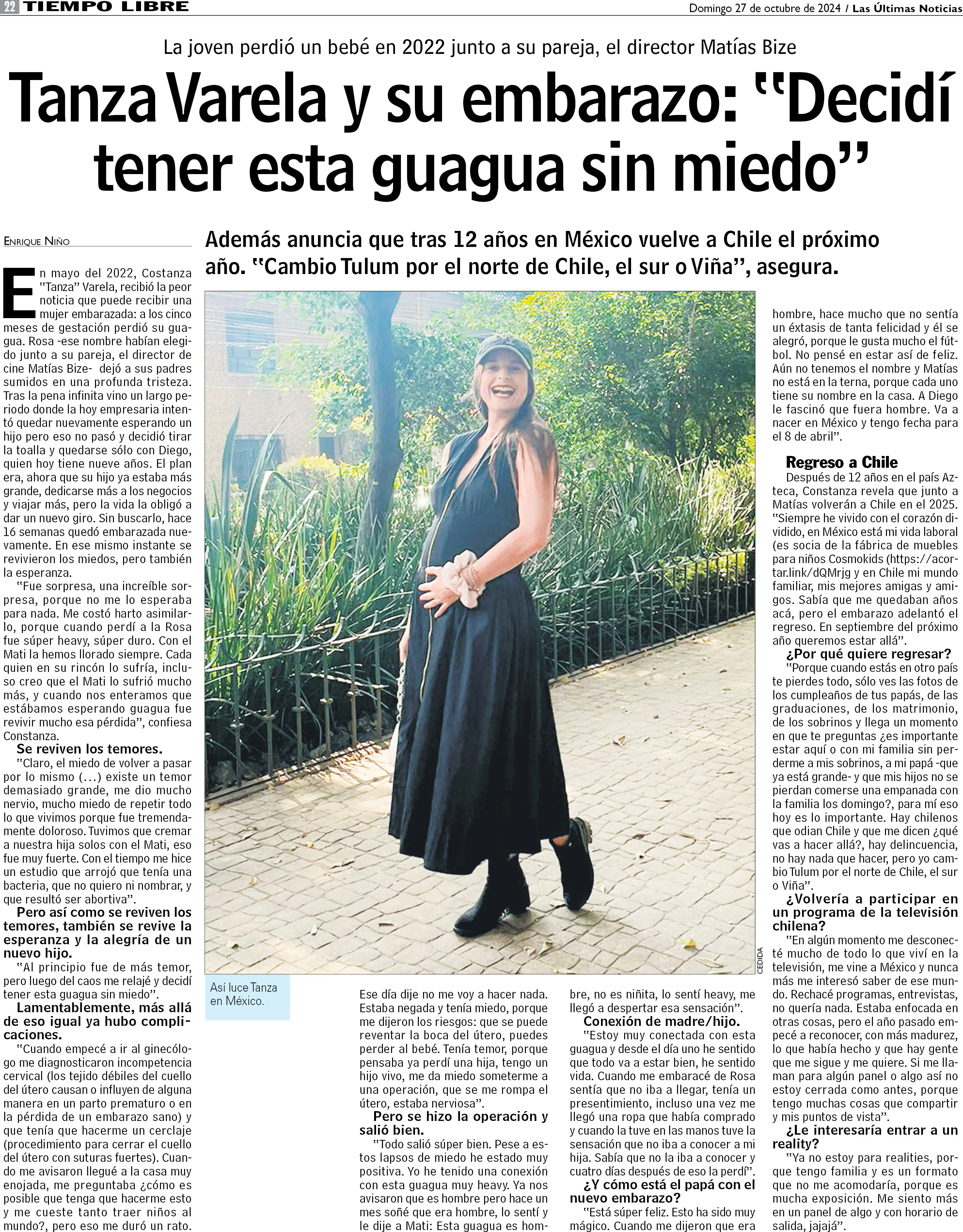 Tanza Varela y su embarazo: "Decidí tener esta guagua sin miedo"