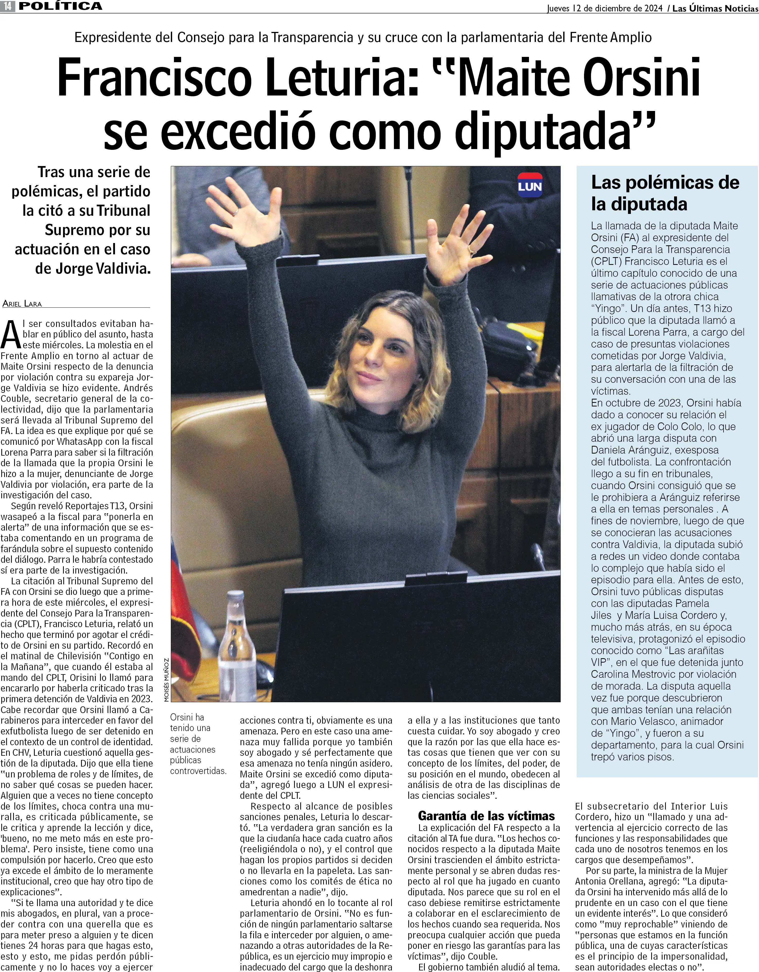 Francisco Leturia: "Maite Orsini se excedió como diputada"