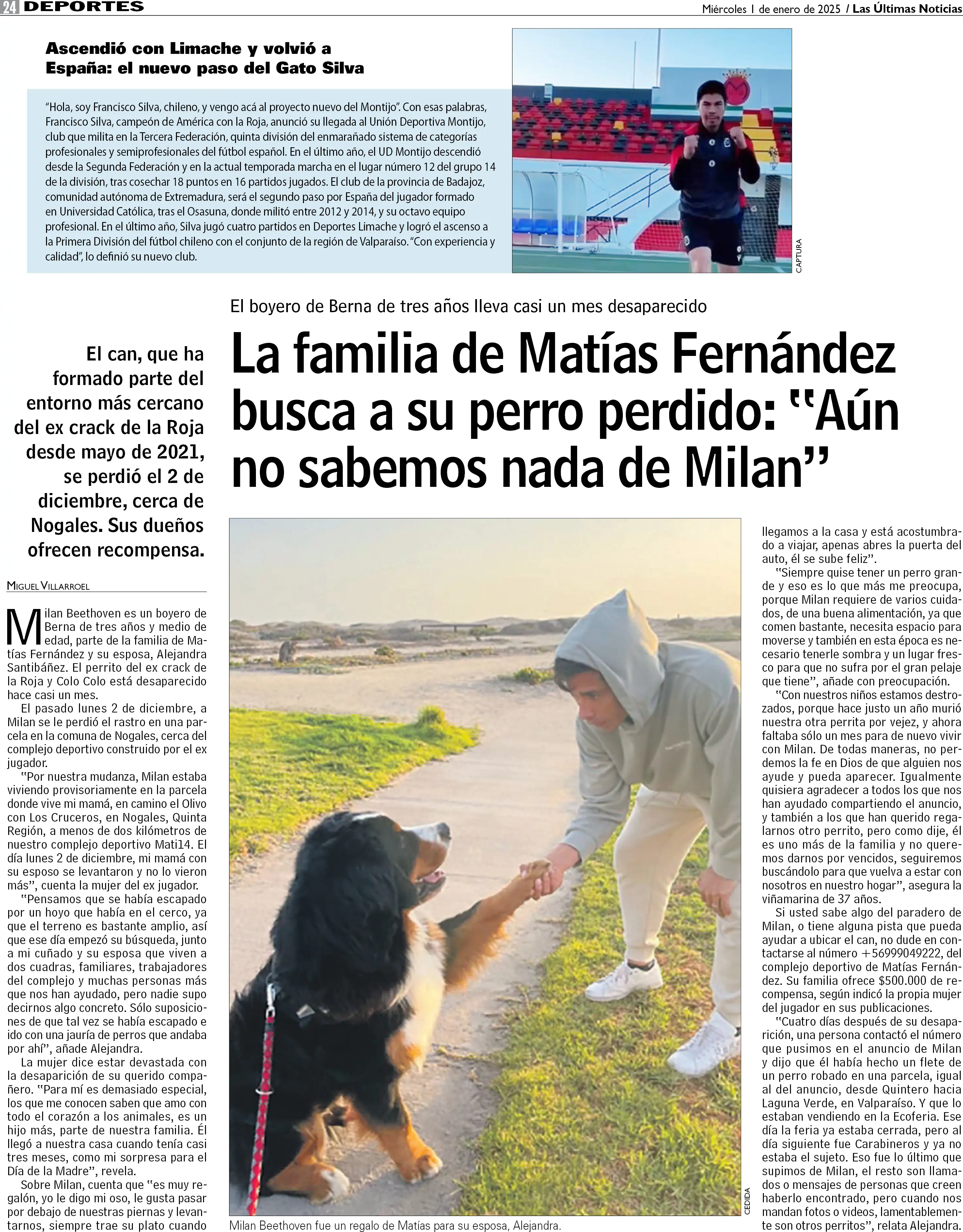 La familia de Matías Fernández busca a su perro perdido: "Aún no sabemos nada de Milan"