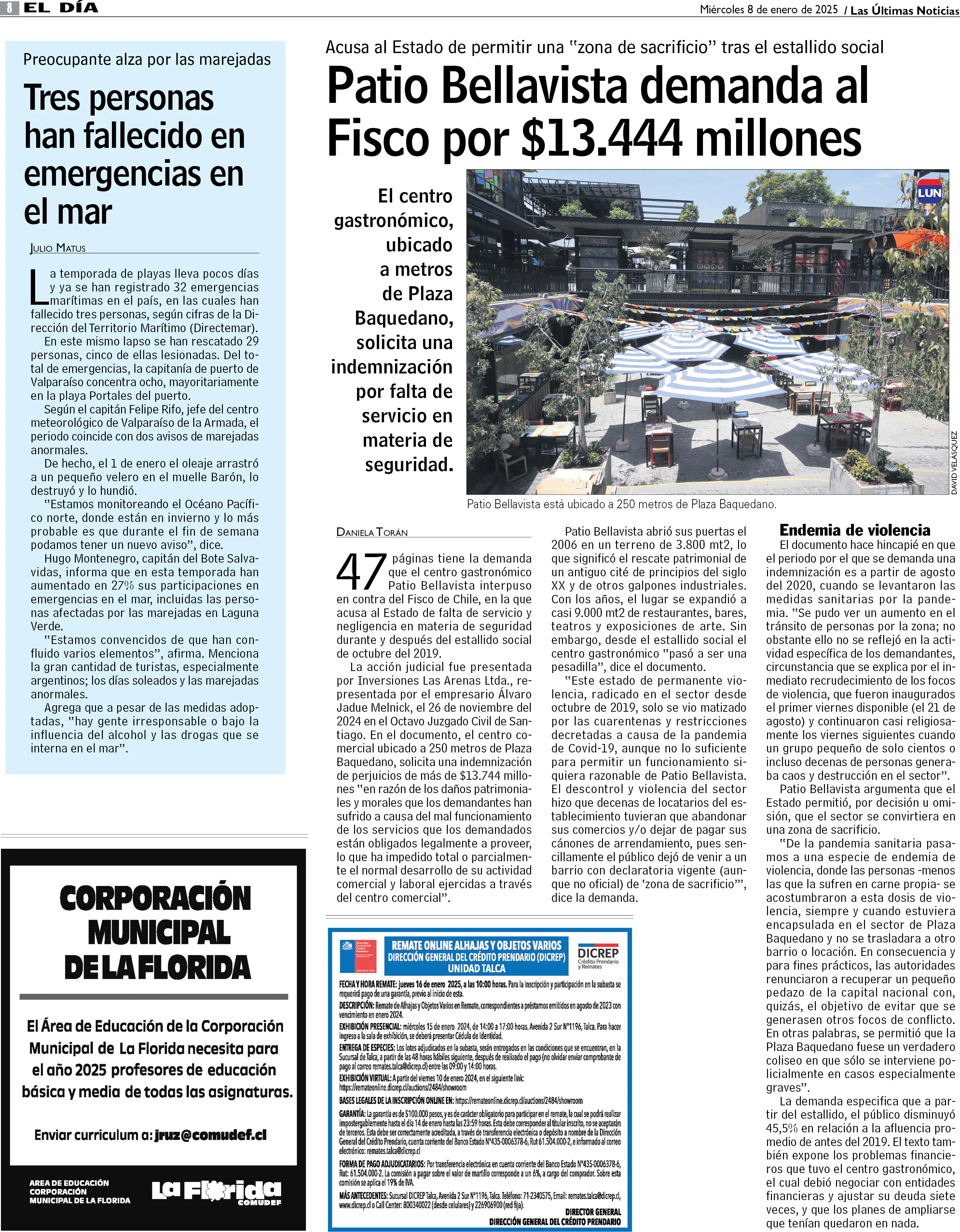 Patio Bellavista demanda al Fisco por $13.444 millones