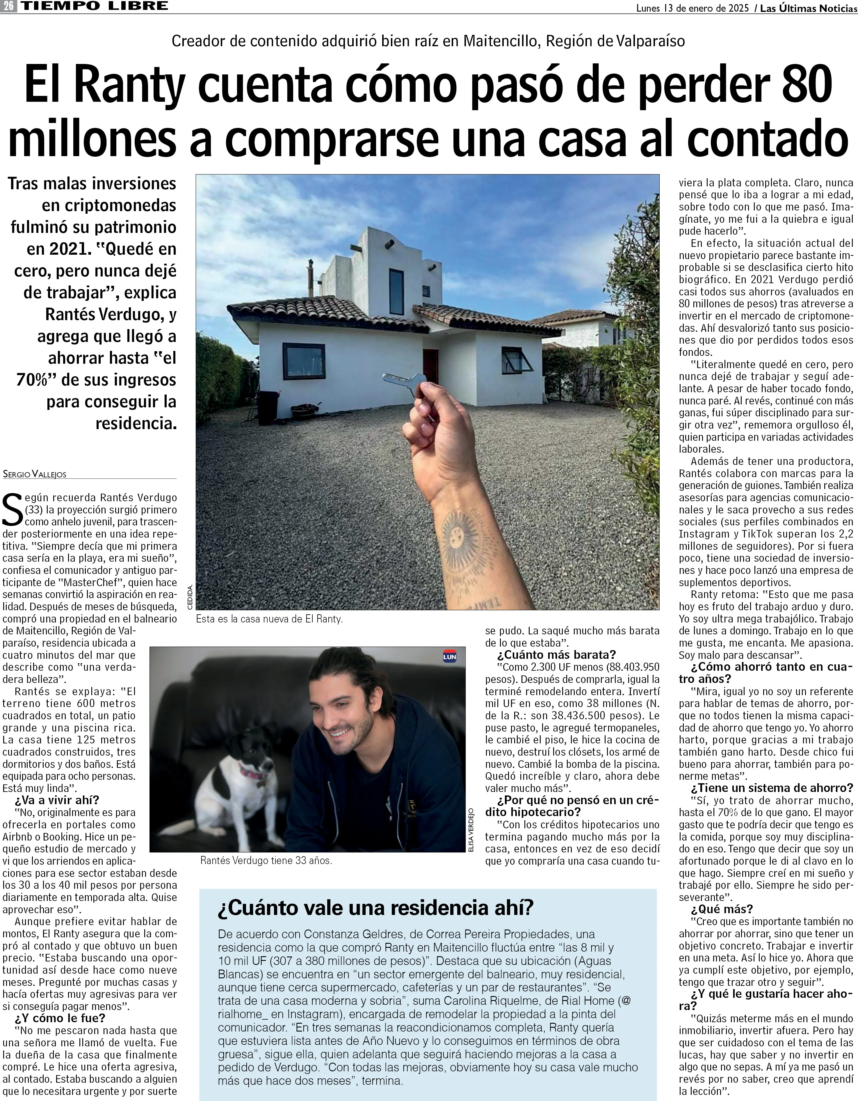 El Ranty cuenta cómo pasó de perder 80 millones a comprarse una casa al contado