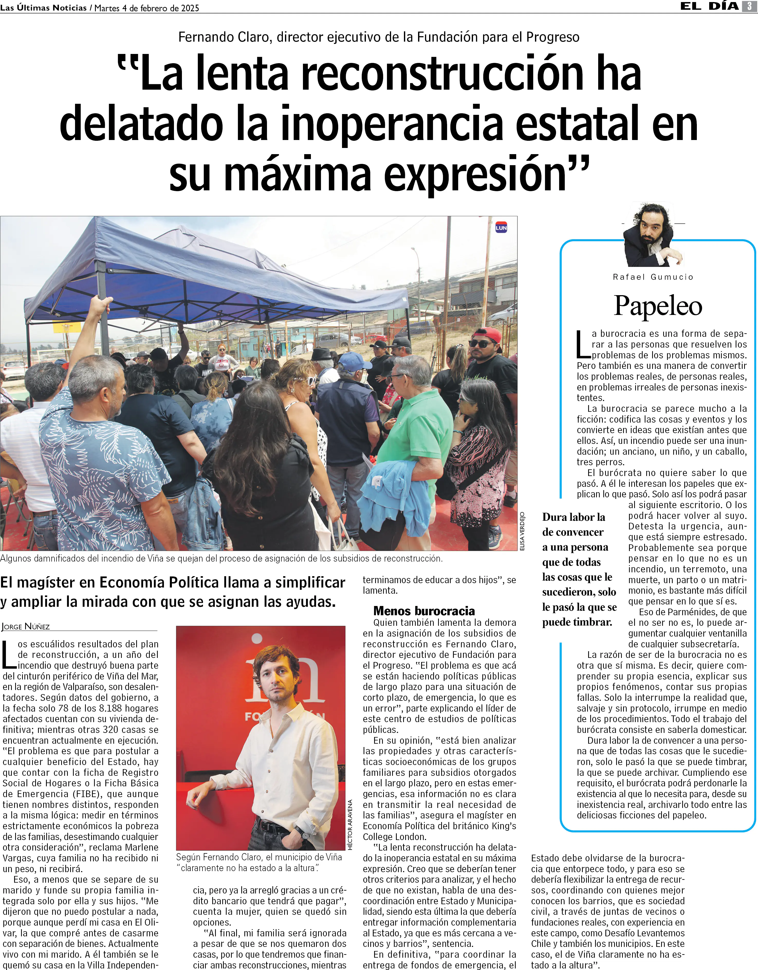 "La lenta reconstrucción ha delatado la inoperancia estatal en su máxima expresión"