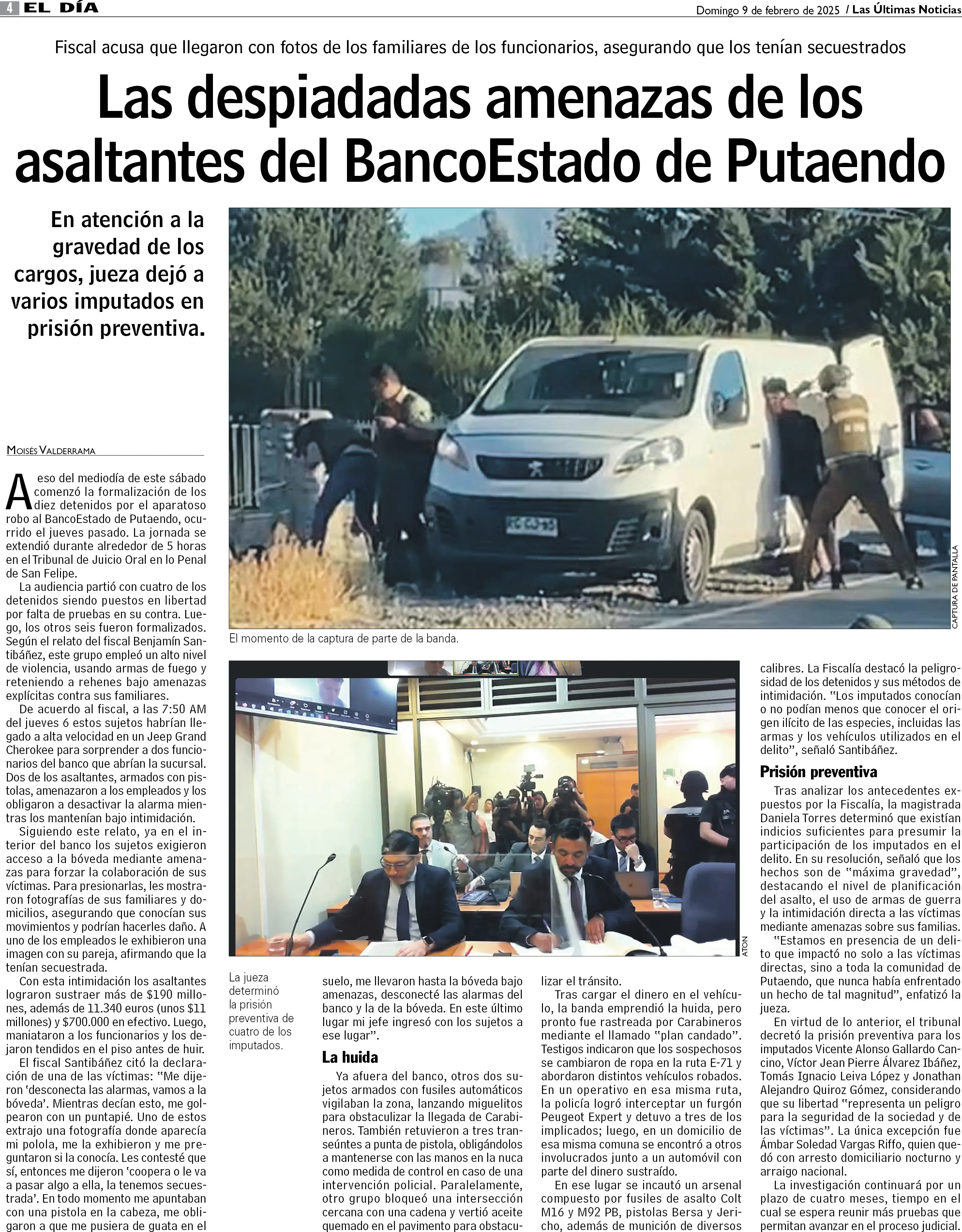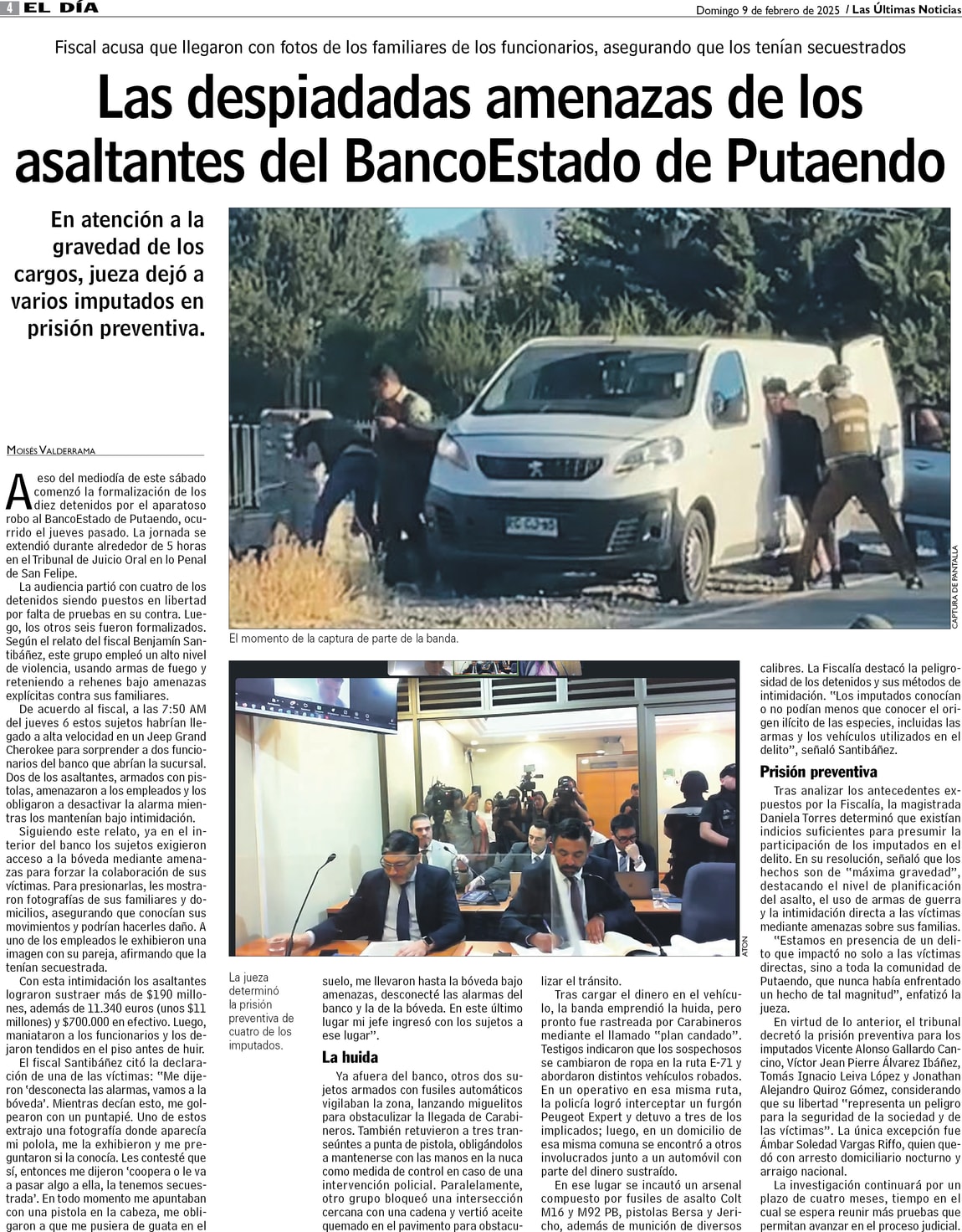 Las despiadadas amenazas de los asaltantes del BancoEstado de Putaendo