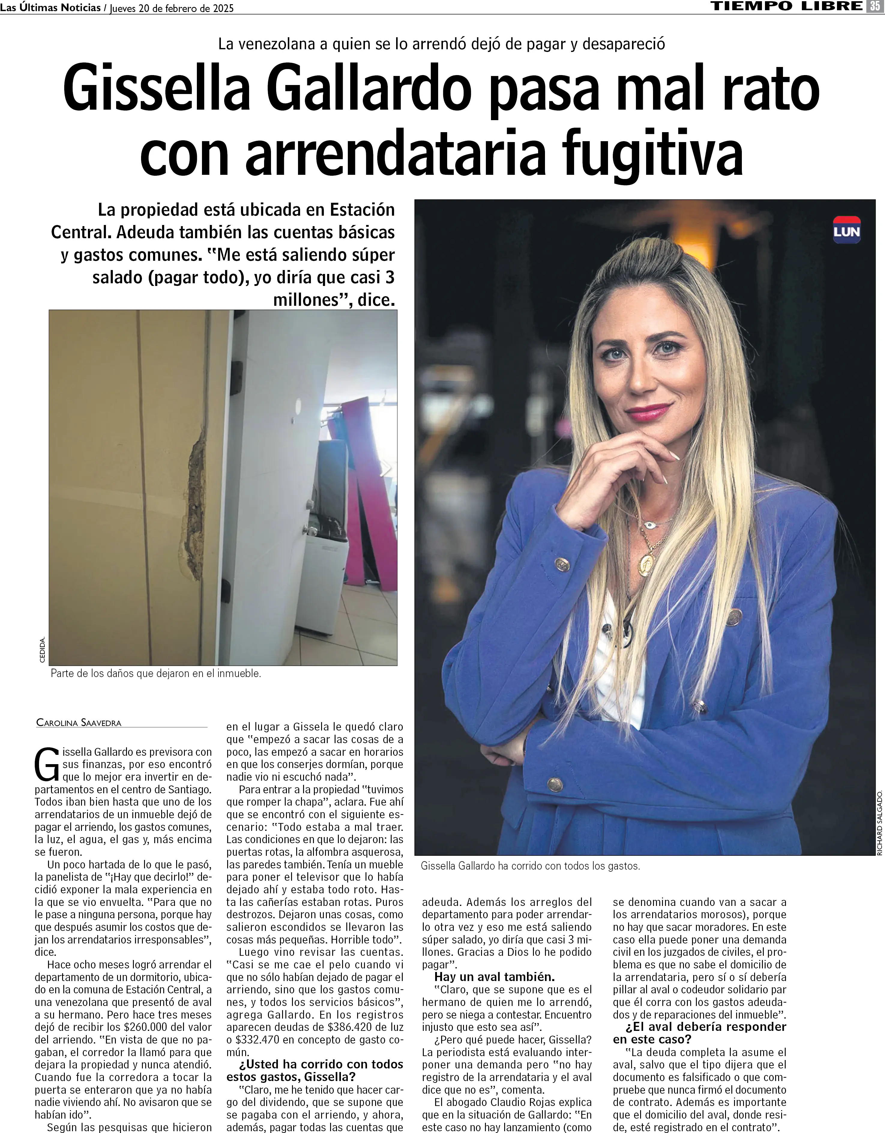 Gissella Gallardo pasa mal rato con arrendataria fugitiva