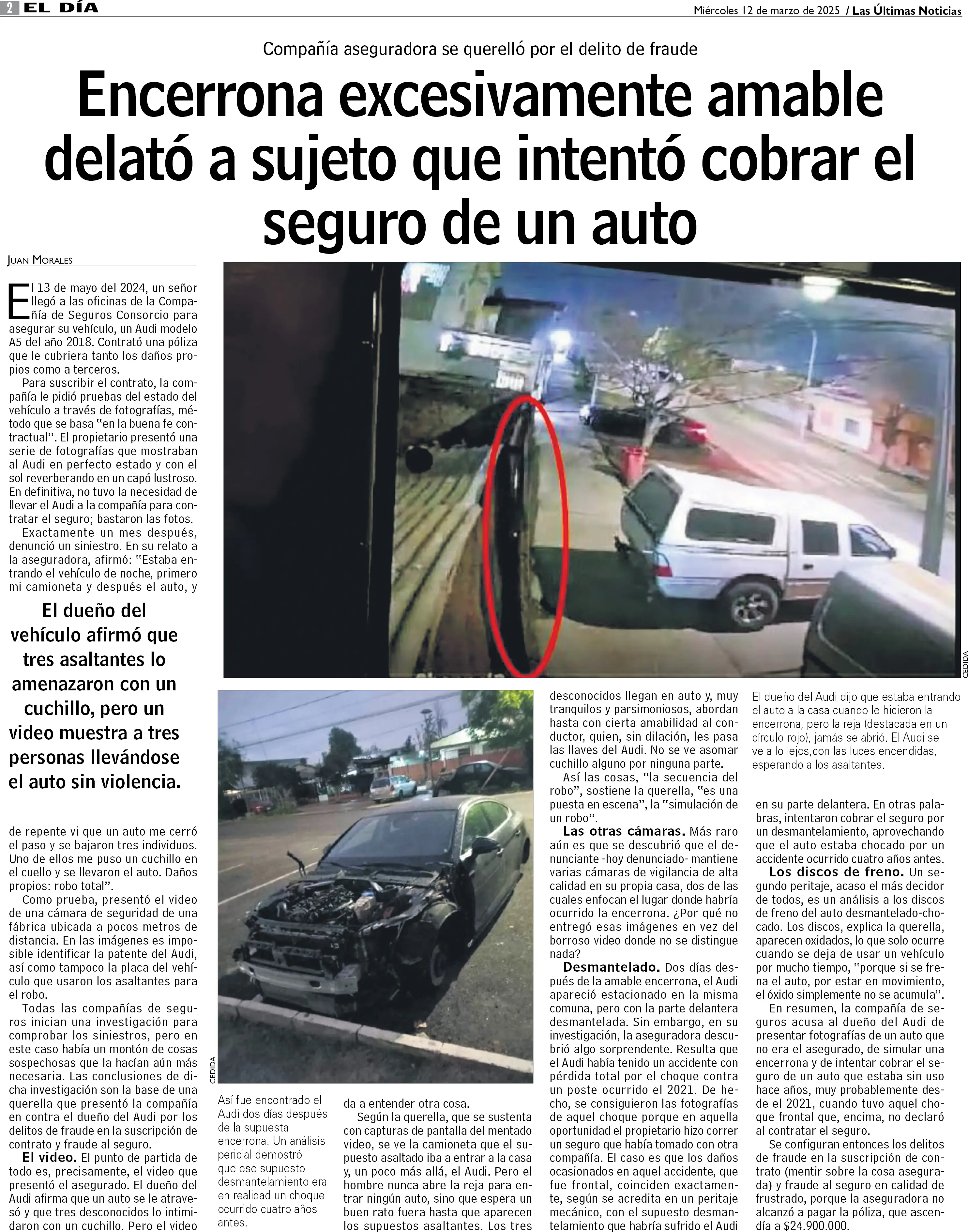 Encerrona excesivamente amable delató a sujeto que intentó cobrar el seguro de un auto