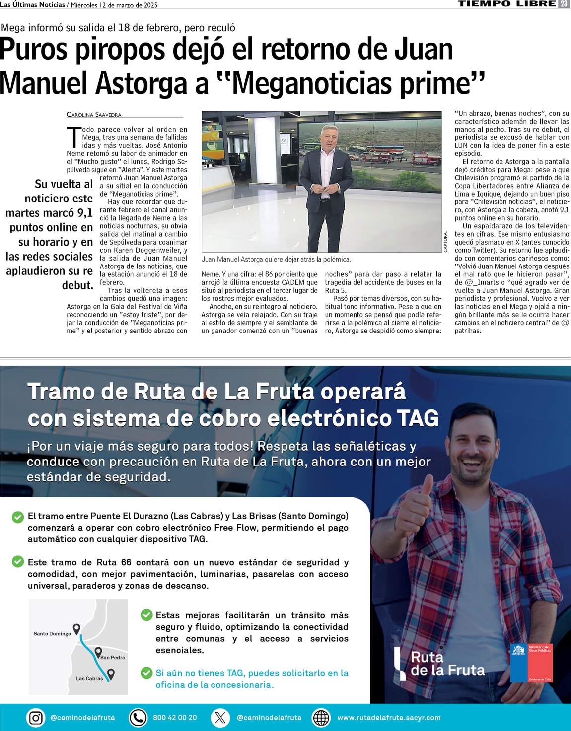 Puros piropos dejó el retorno de Juan Manuel Astorga a "Meganoticias prime"