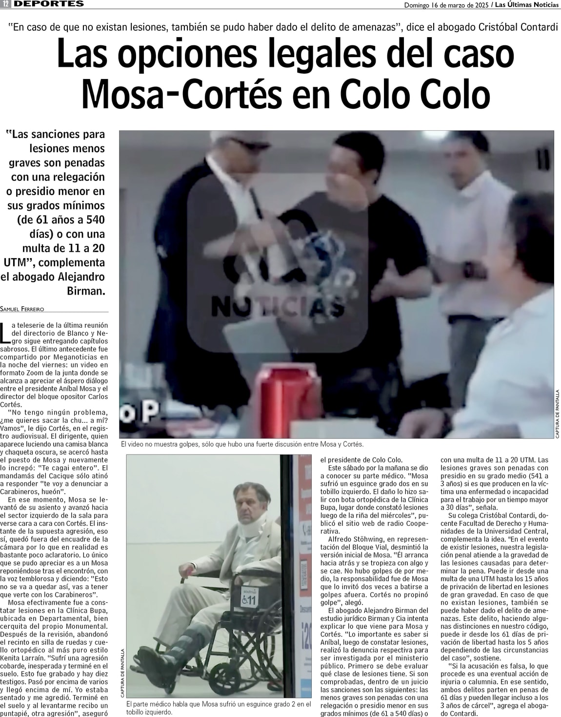 Las opciones legales del caso Mosa-Cortés en Colo Colo