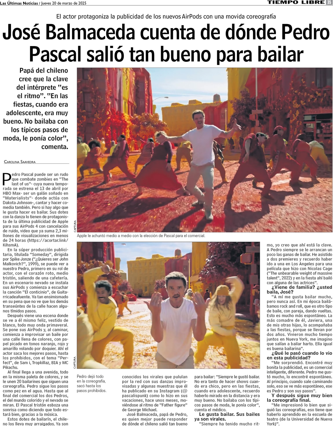 José Balmaceda cuenta de dónde Pedro Pascal salió tan bueno para bailar